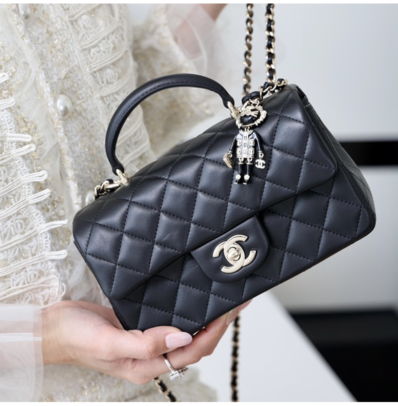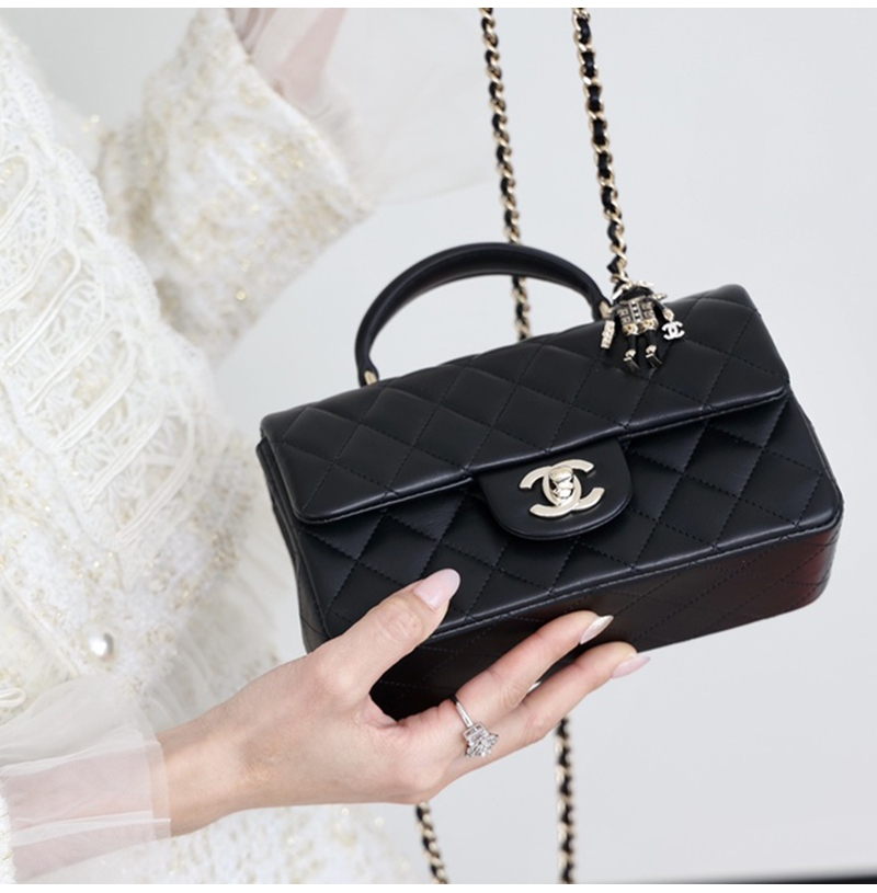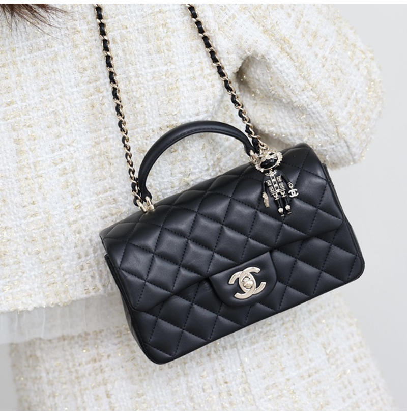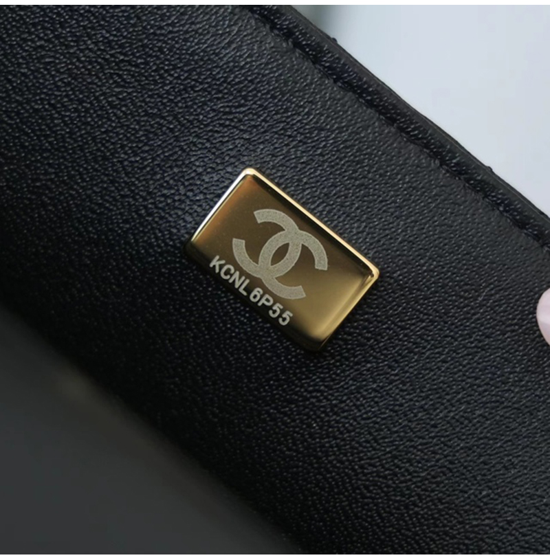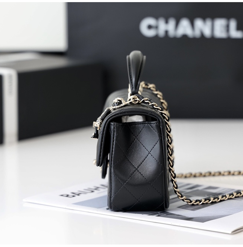 [스페셜오더]CHANEL-AS2431 샤넬 22S 블랙 램스킨 골드 핸들 장식 플랩 미니 탑핸들 백
