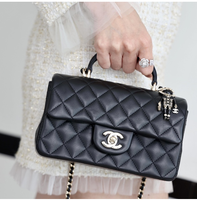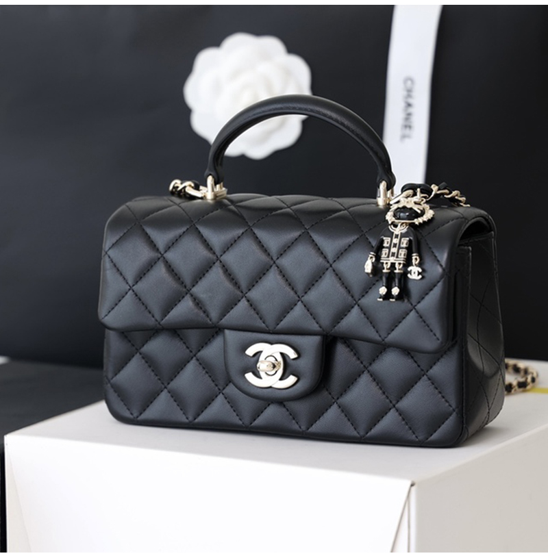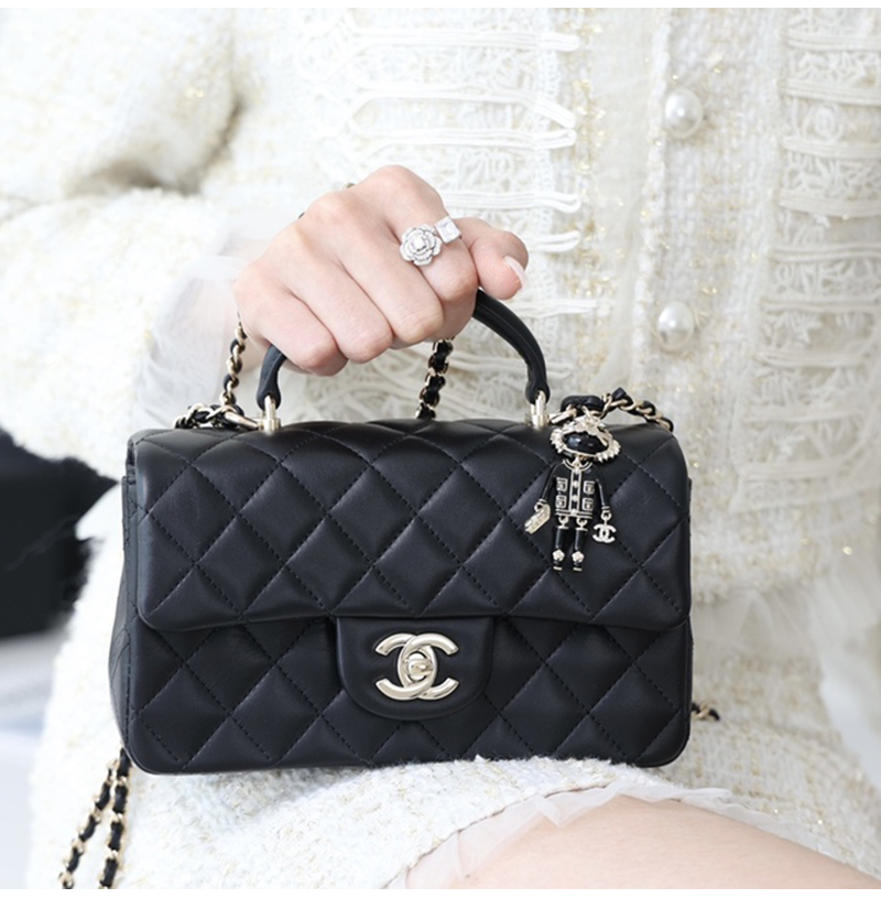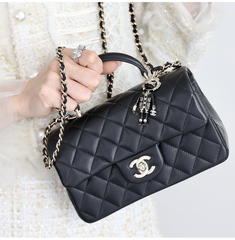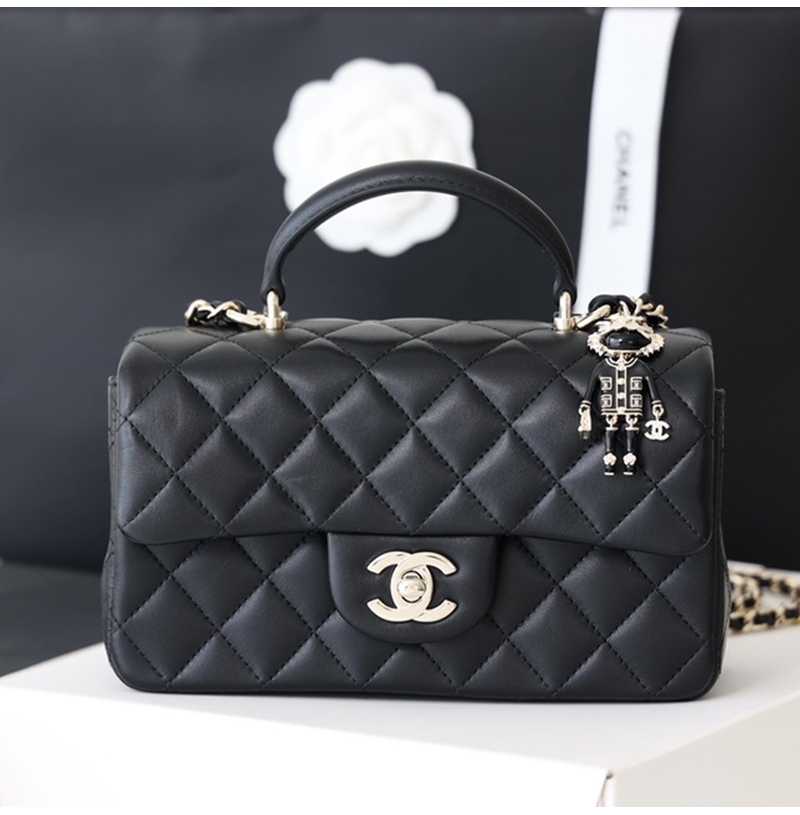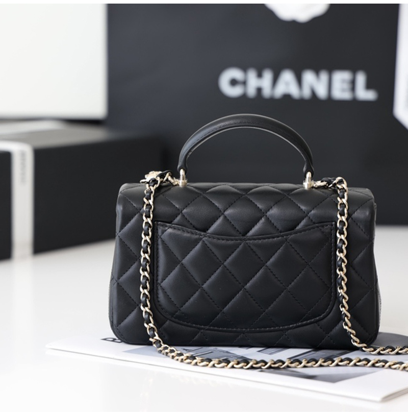 [스페셜오더]CHANEL-AS2431 샤넬 22S 블랙 램스킨 골드 핸들 장식 플랩 미니 탑핸들 백