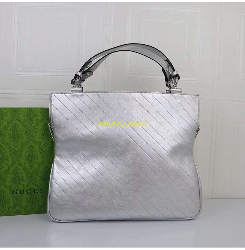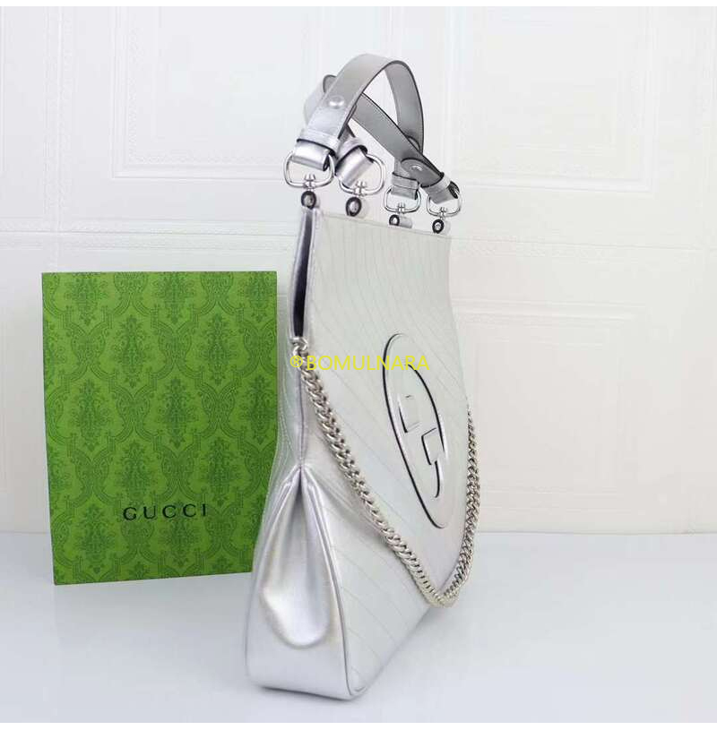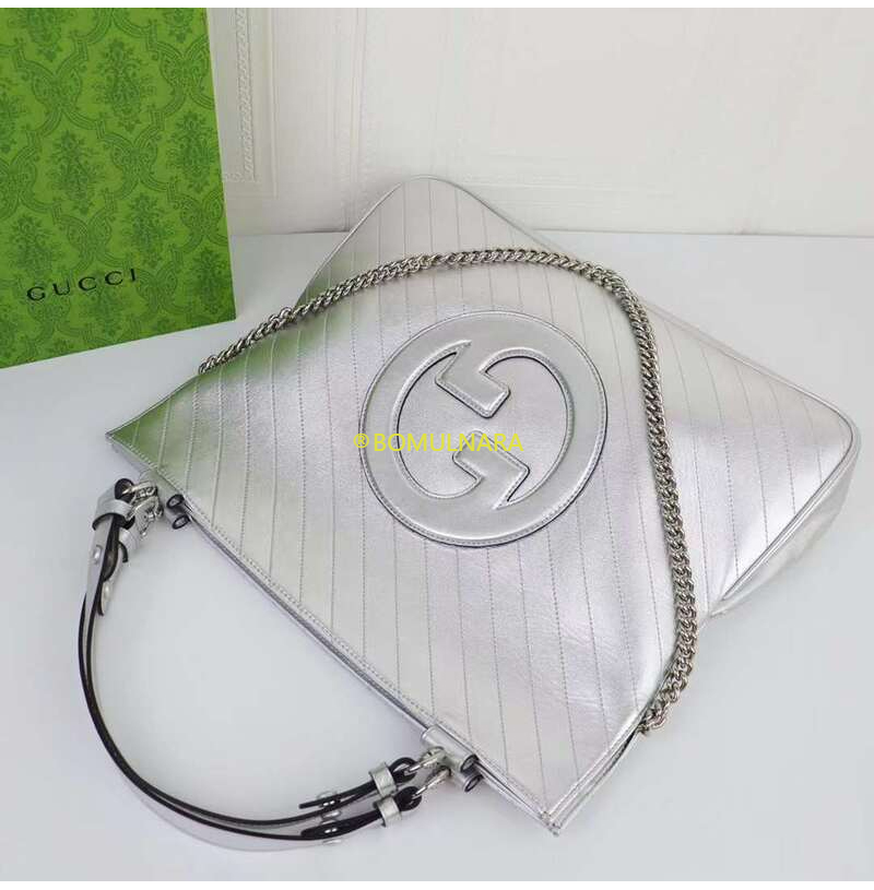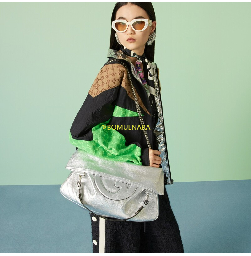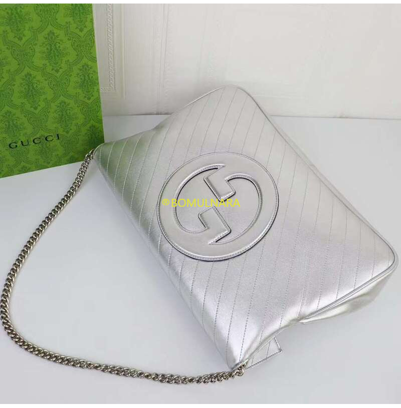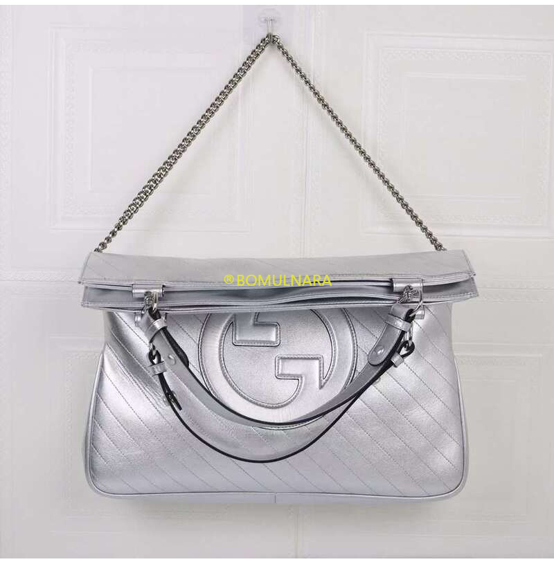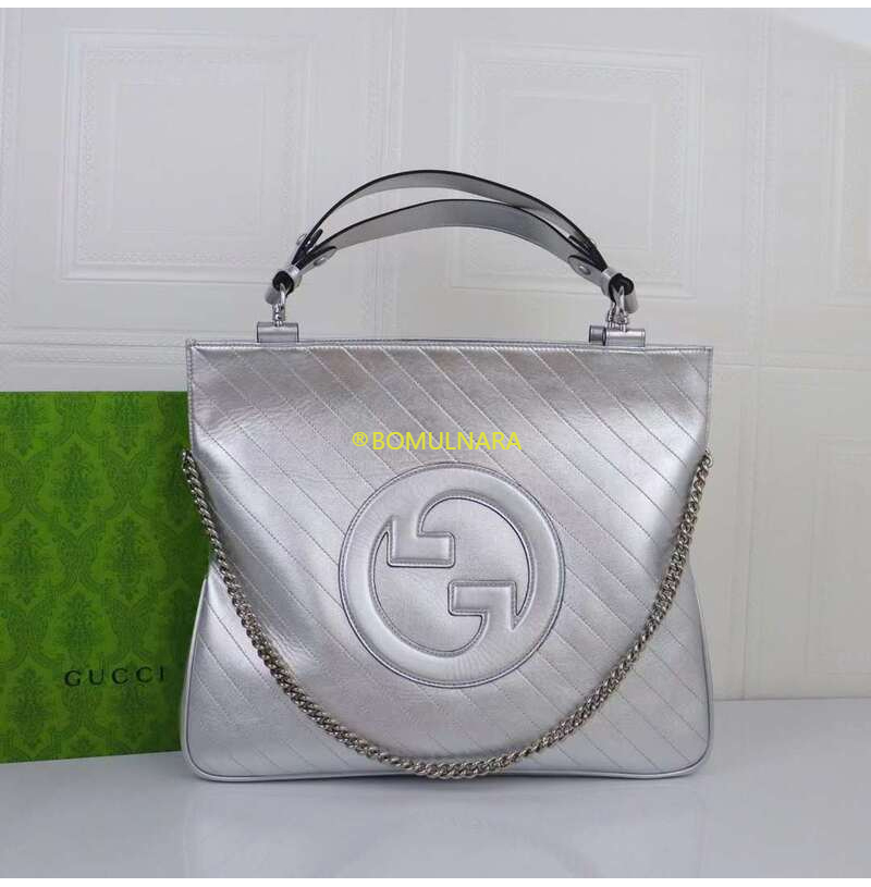 [스페셜오더]GUCCI-751516 8106 구찌 실버 메탈릭 라운드 인터로킹 G 블론디 미디엄 토트백
