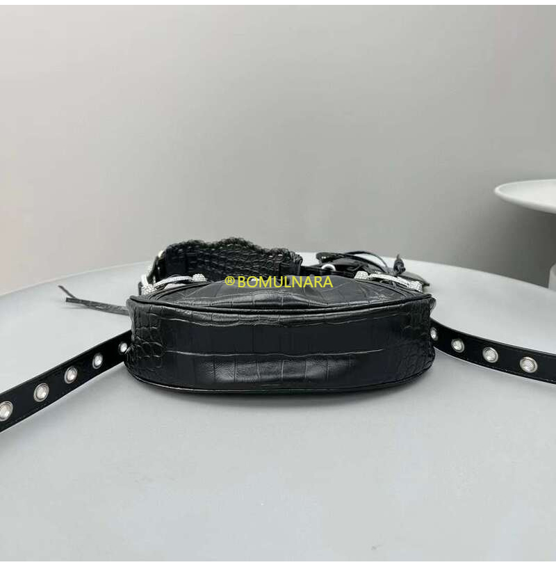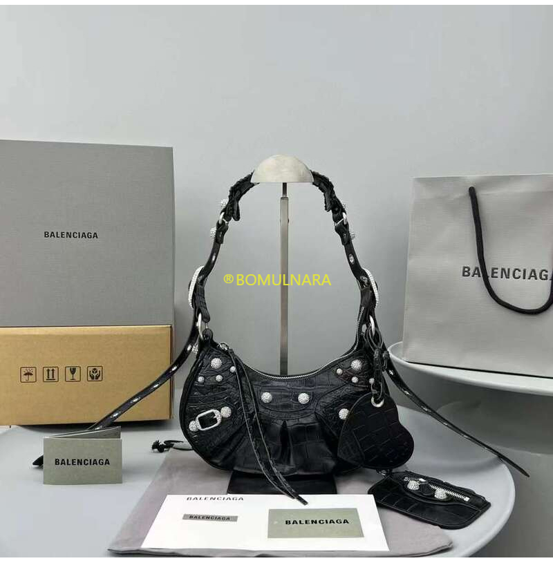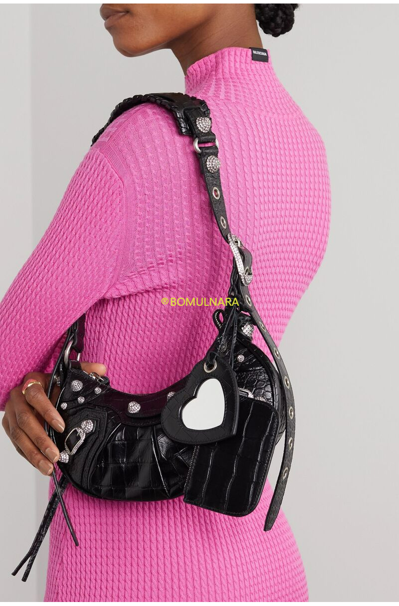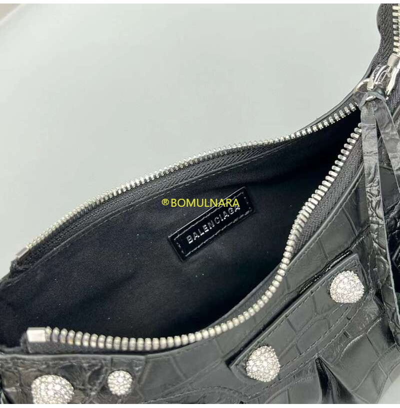 [스페셜오더]BALENCIAGA-671309 발렌시아가 블랙 크로커다일 엠보싱 라인스톤 LE CAGOLE XS 숄더 백