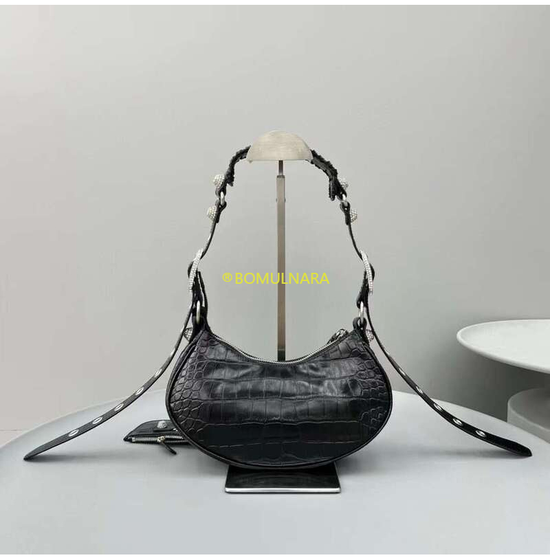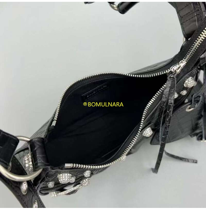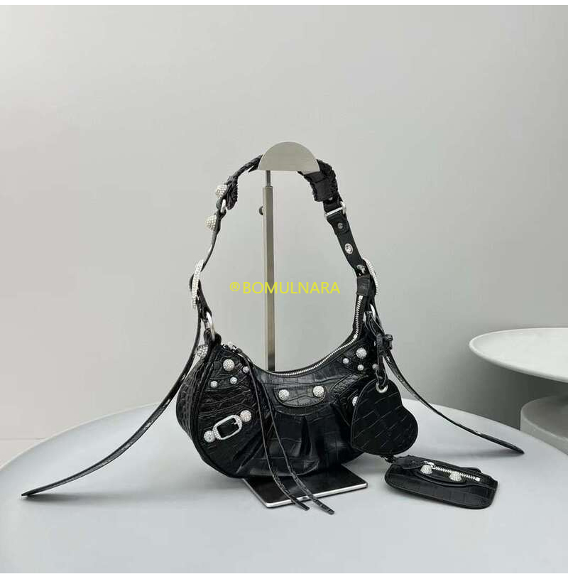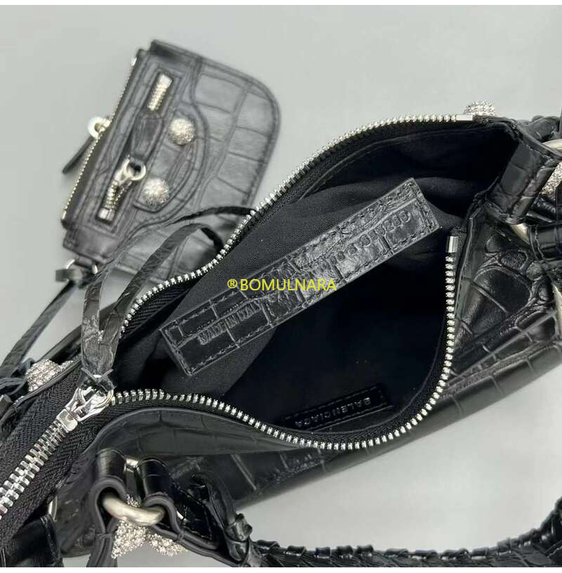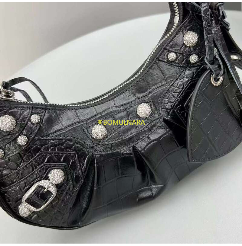 [스페셜오더]BALENCIAGA-671309 발렌시아가 블랙 크로커다일 엠보싱 라인스톤 LE CAGOLE XS 숄더 백