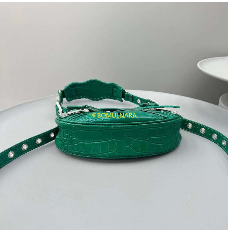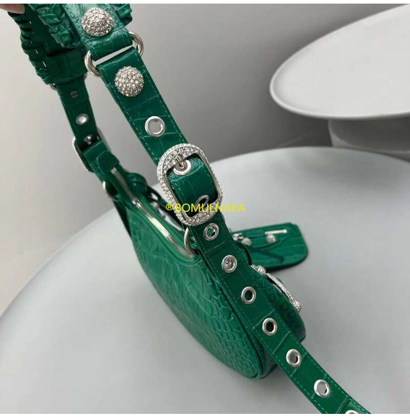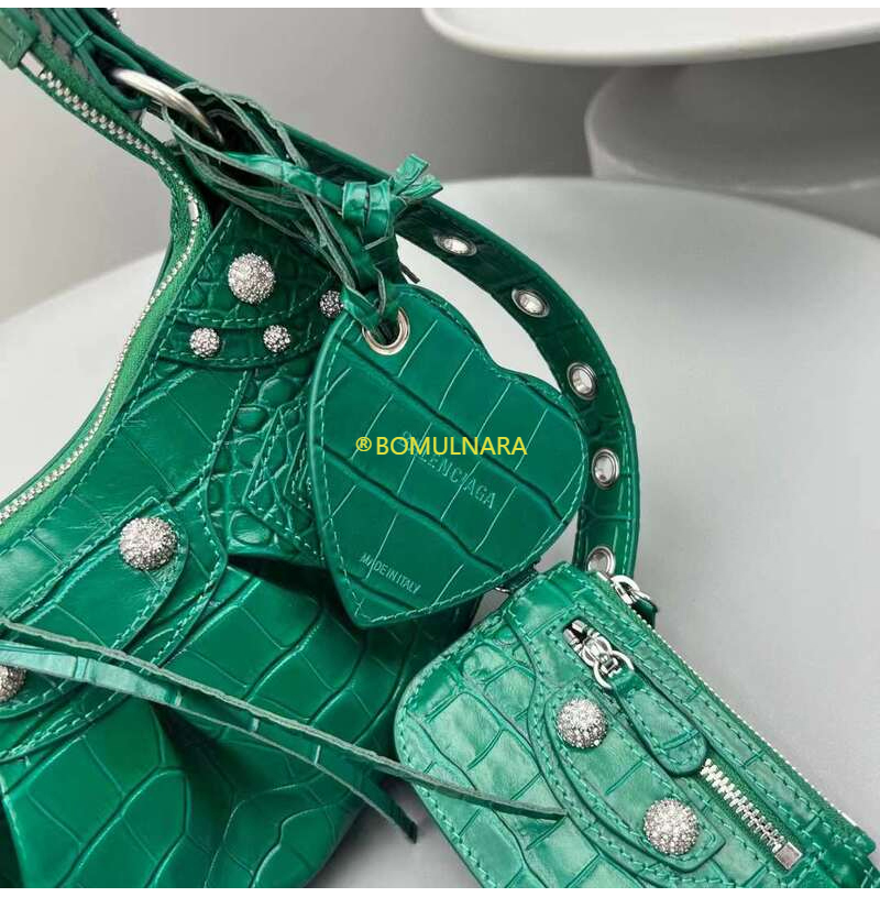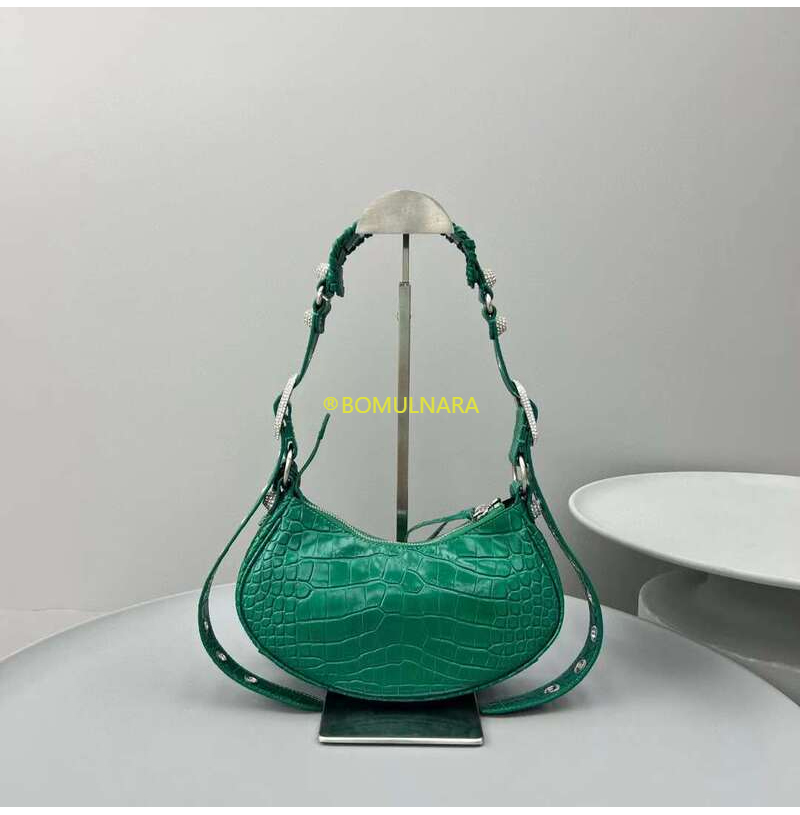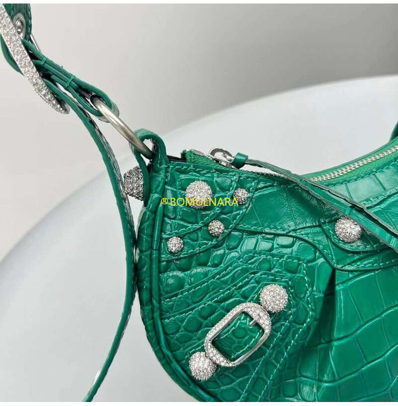 [스페셜오더]BALENCIAGA-671309 발렌시아가 그린 크로커다일 엠보싱 라인스톤 LE CAGOLE XS 숄더 백