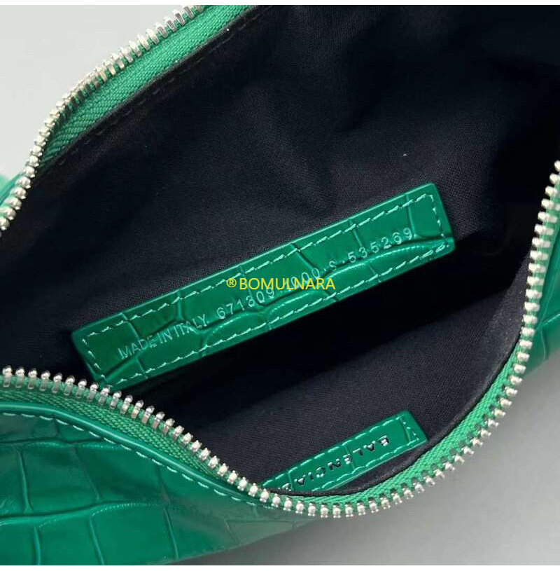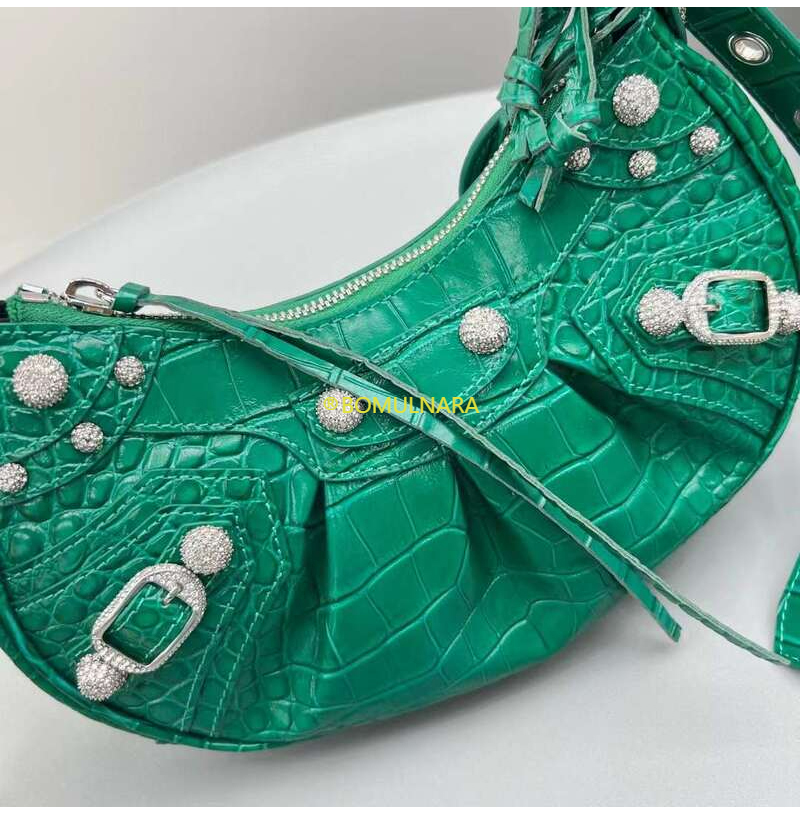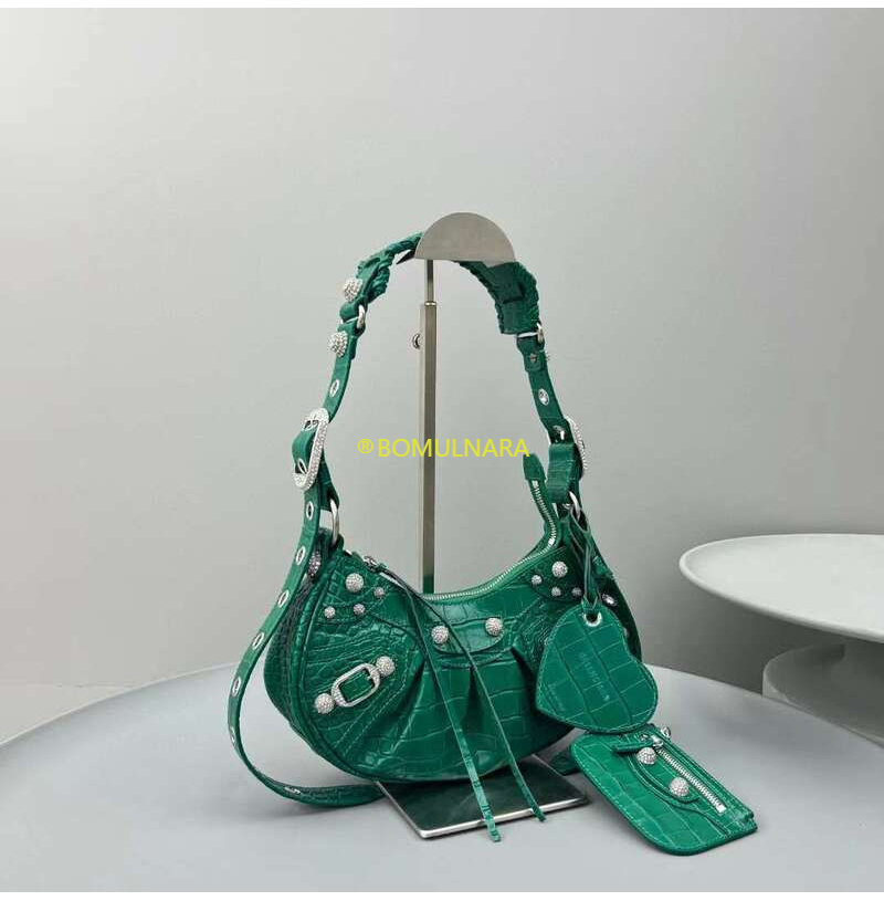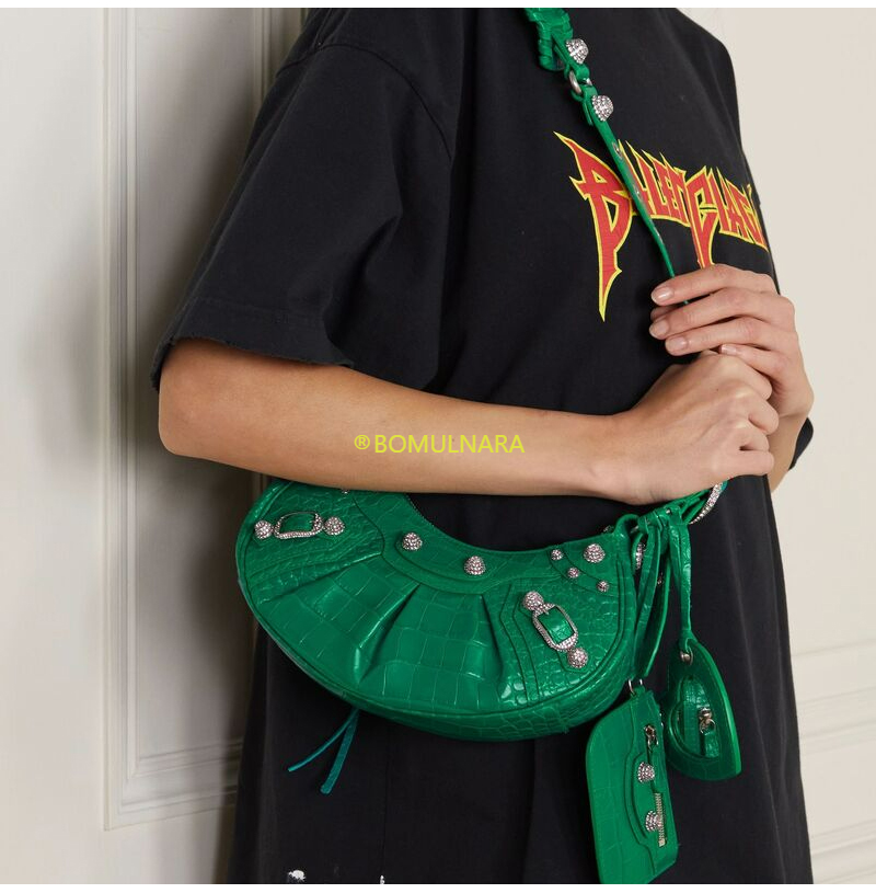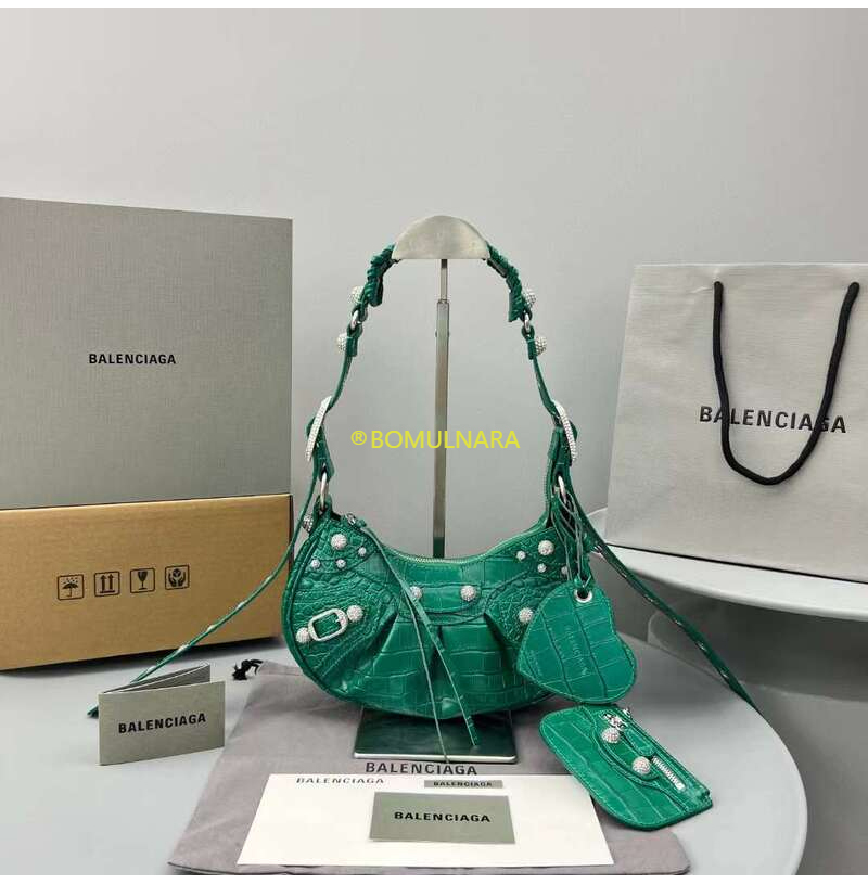 [스페셜오더]BALENCIAGA-671309 발렌시아가 그린 크로커다일 엠보싱 라인스톤 LE CAGOLE XS 숄더 백