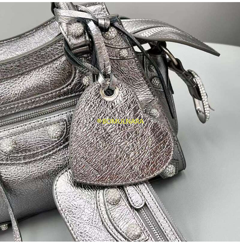 [스페셜오더]BALENCIAGA-700940 발렌시아가 실버 메탈릭 라인스톤 NEO CAGOLE XS 핸드백