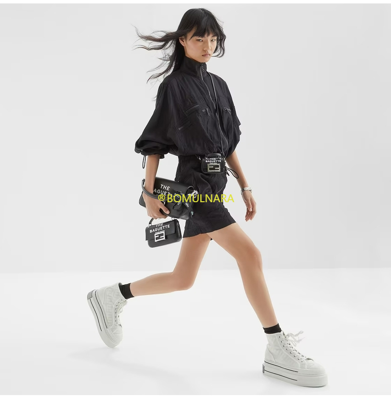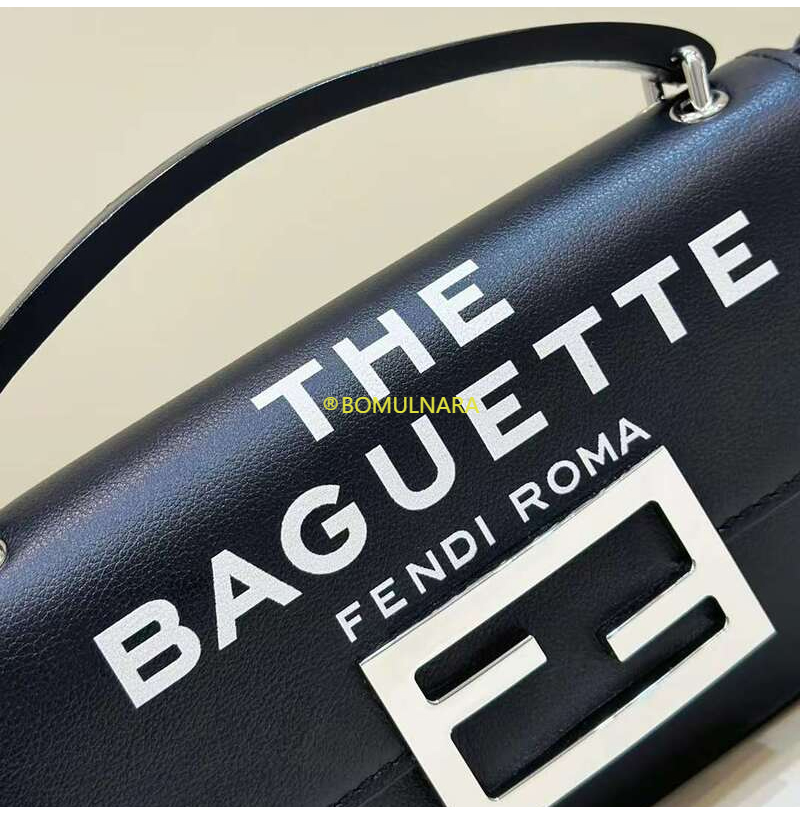 *화이트 컬러 The Baguette Fendi Roma 레터링 장식