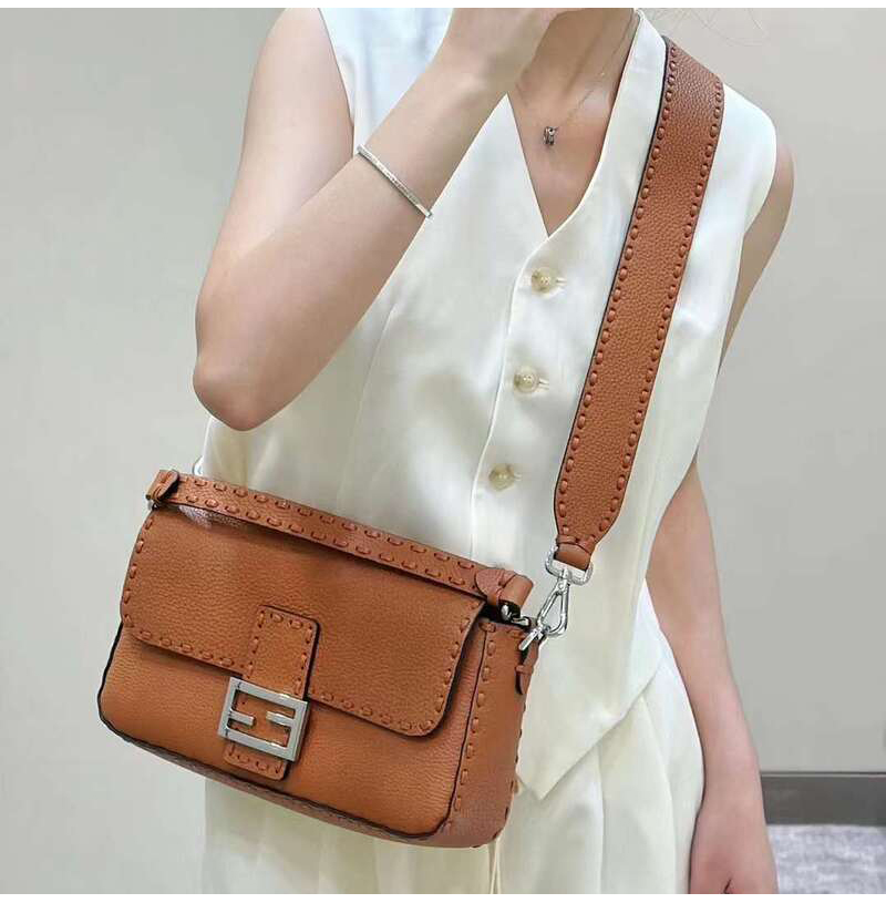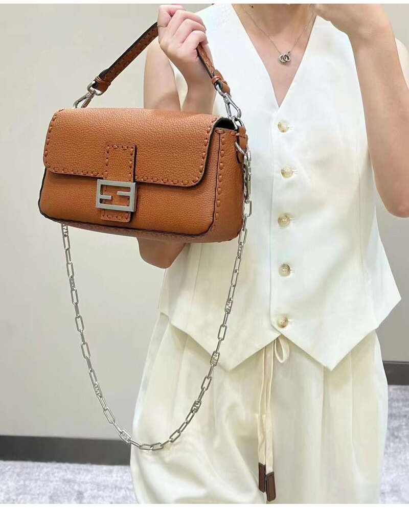[스페셜오더]FENDI-FENDI-8BR600 펜디 브라운 오버사이즈 탑스티치 셀러리아 미디엄 바게트 백 27CM