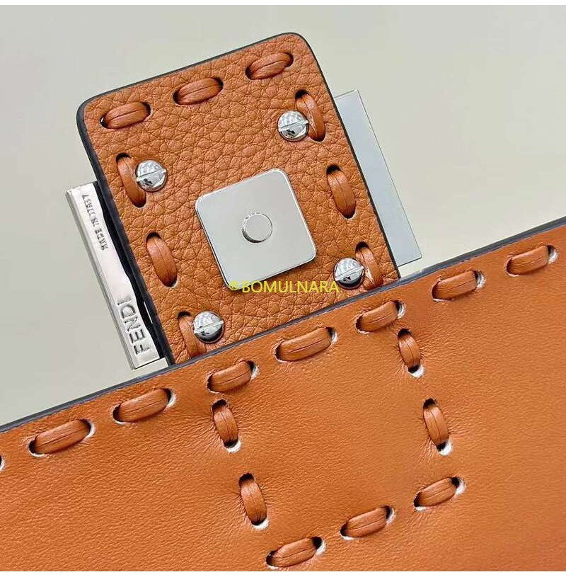 [스페셜오더]FENDI-8BR600 펜디 카멜리아 오버사이즈 탑스티치 셀러리아 미디엄 바게트 백 27CM