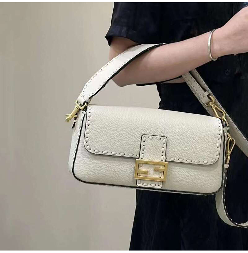 [스페셜오더]FENDI-8BR600 펜디 카멜리아 오버사이즈 탑스티치 셀러리아 미디엄 바게트 백 27CM