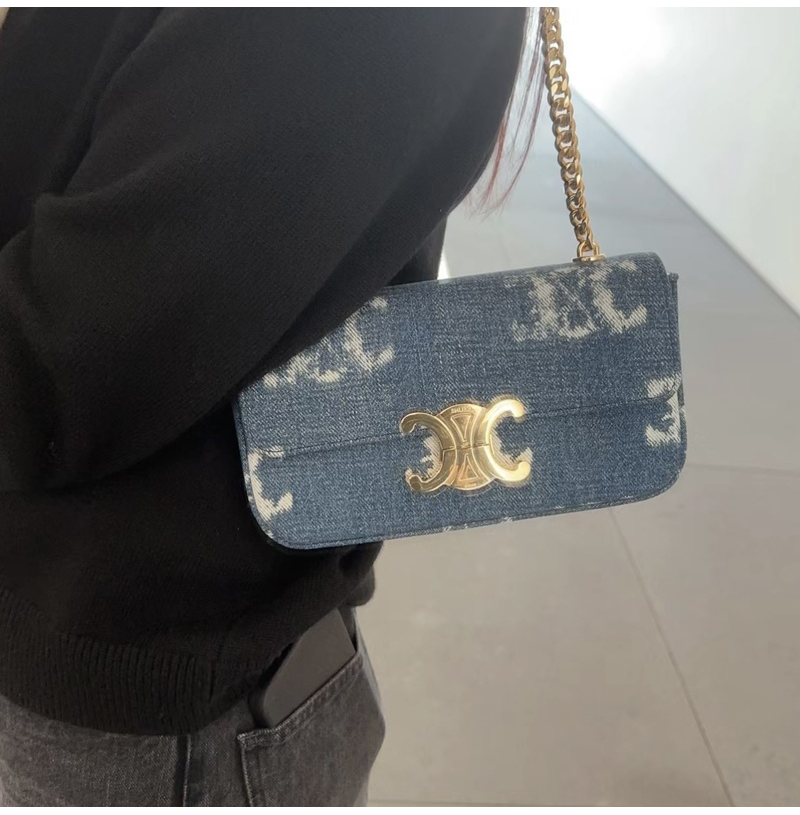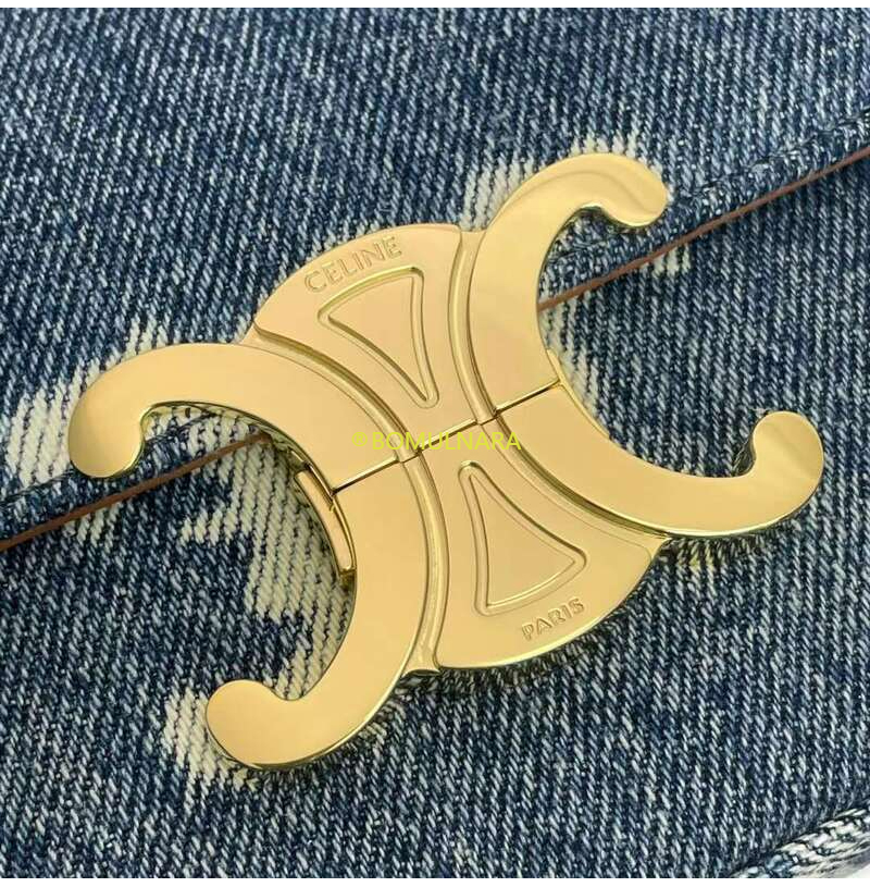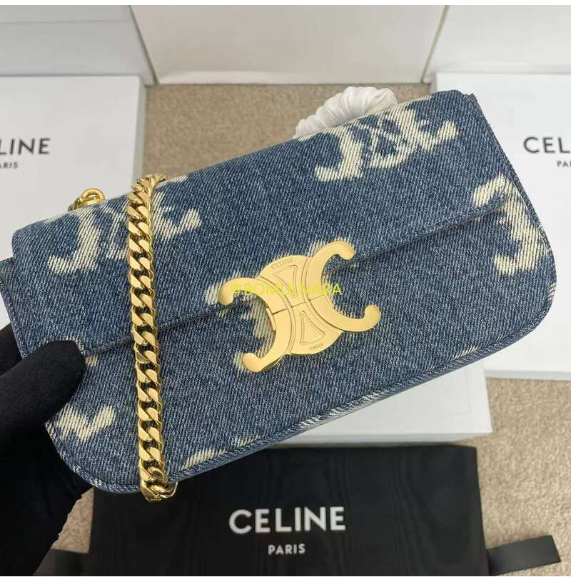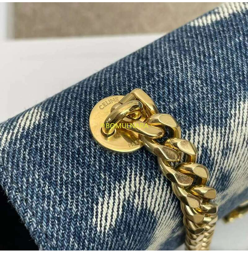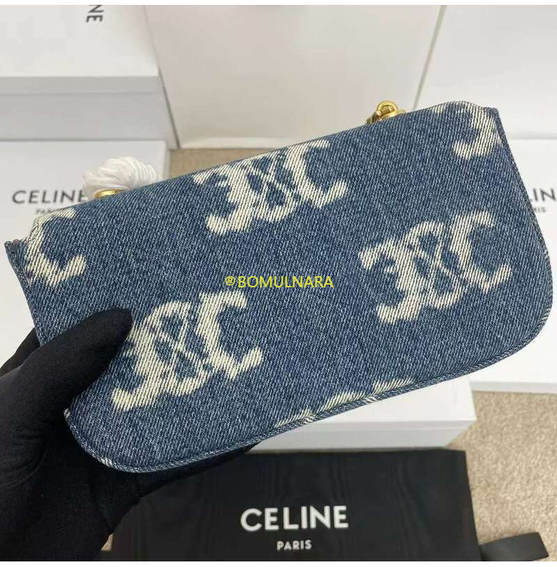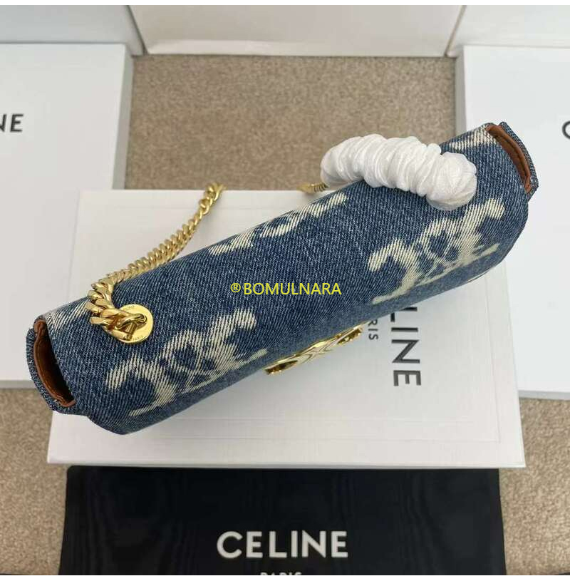 [스페셜오더]CELINE-197992 셀린느 네이비/탠 트리옹프 데님 캔버스 체인 숄더백