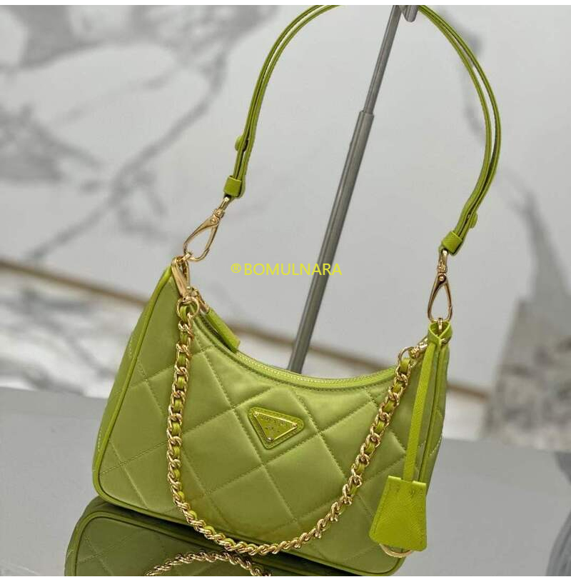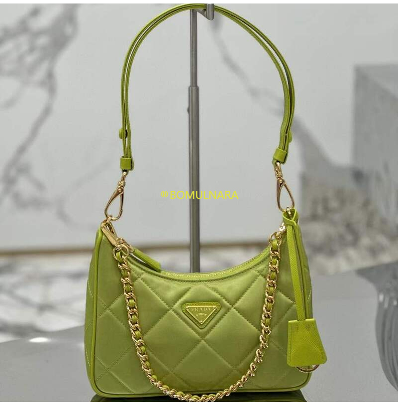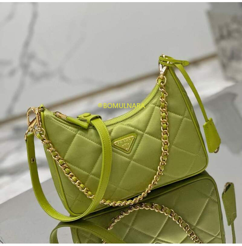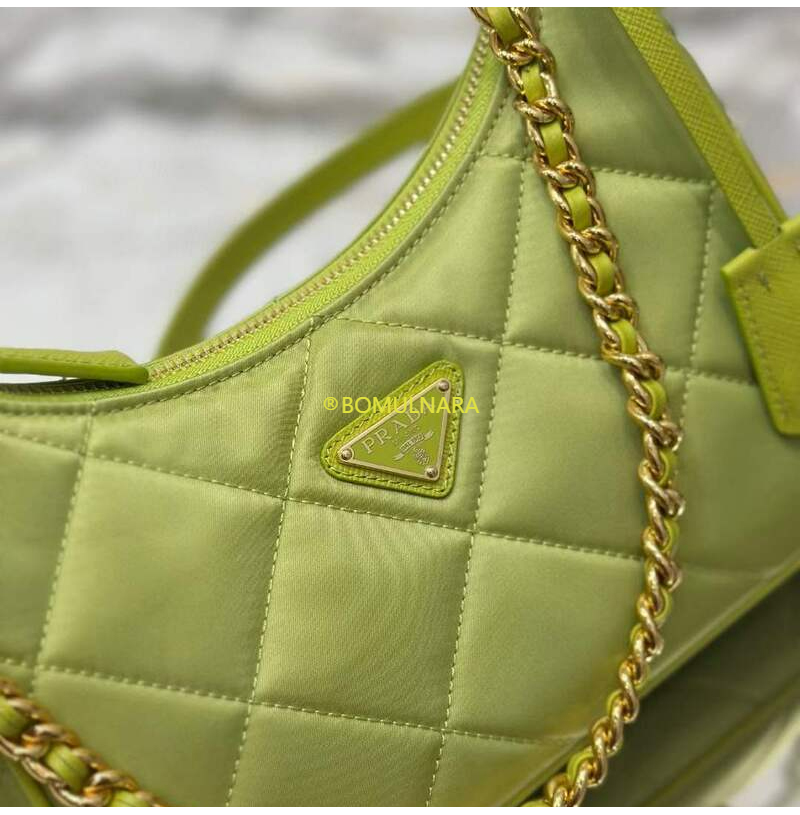 [스페셜오더]PRADA-1BC204 프라다 라임 그린 패딩 탑 스티치 리나일론 미니백 22CM