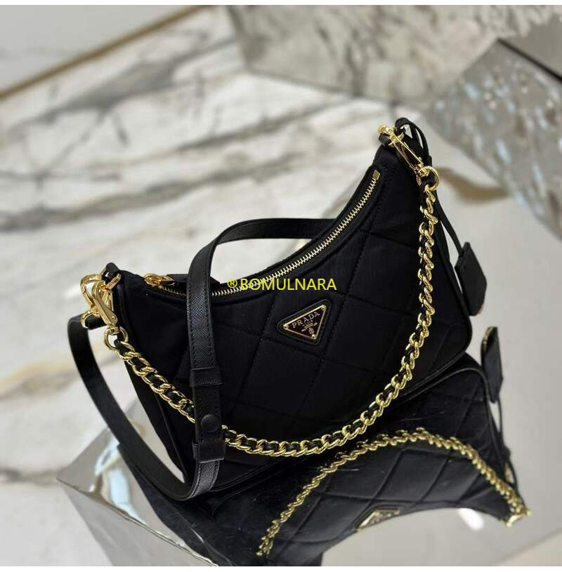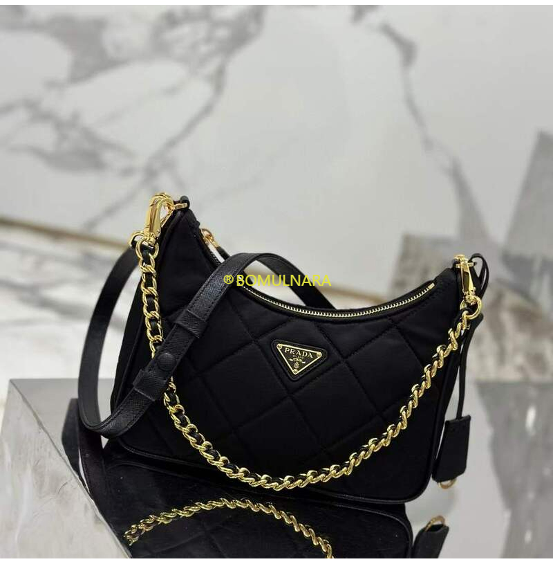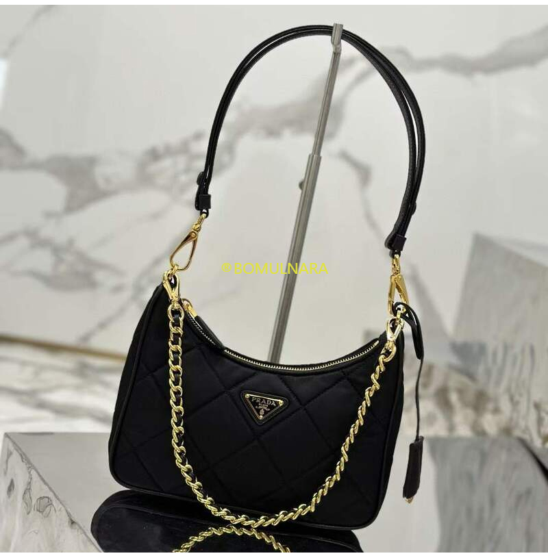 [스페셜오더]PRADA-1BC204 프라다 블랙 패딩 탑 스티치 리나일론 미니백 22CM