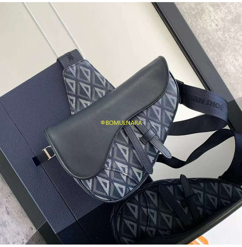 [스페셜오더]DIOR-1ADPO 디올 네이비 블루 CD Diamond 캔버스 SADDLE 백 26CM