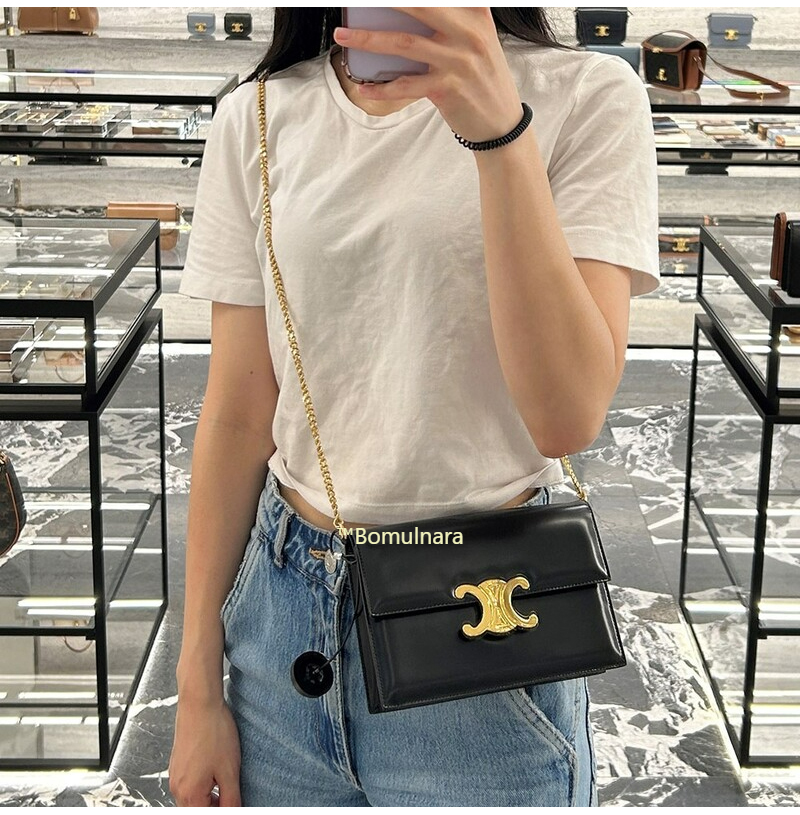 [스페셜오더]CELINE-10L773 셀린느 블랙 트리옹프 스와 체인 클러치 19CM