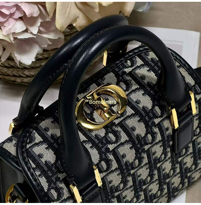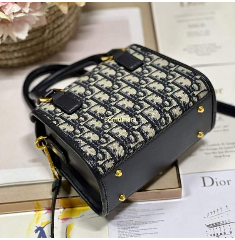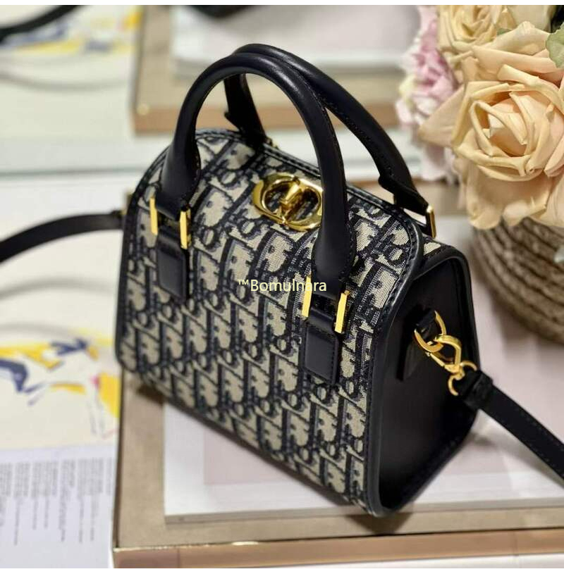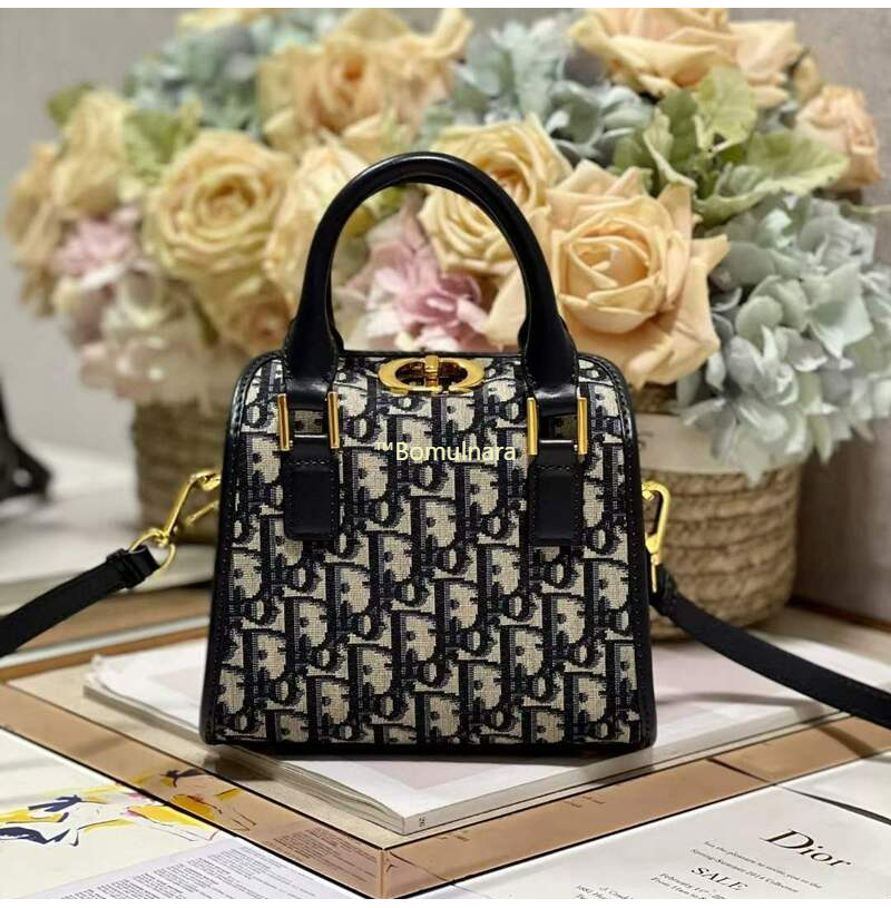 DIOR-M8671 디올 블루 Oblique 자수 스몰 보스턴