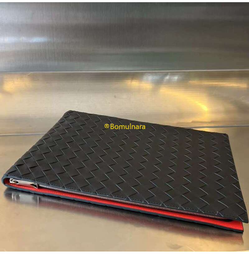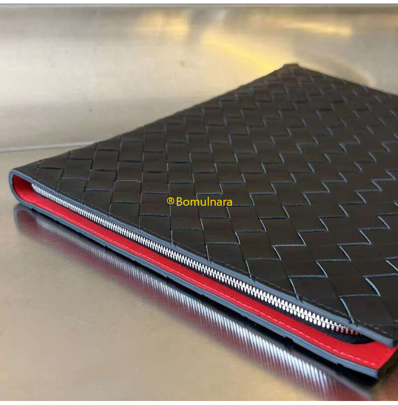 [스페셜오더]BOTTEGA VENETA-607479 보테가 베네타 블랙/레드스톤 인트레치아토 하프 지퍼 파우치 33cm