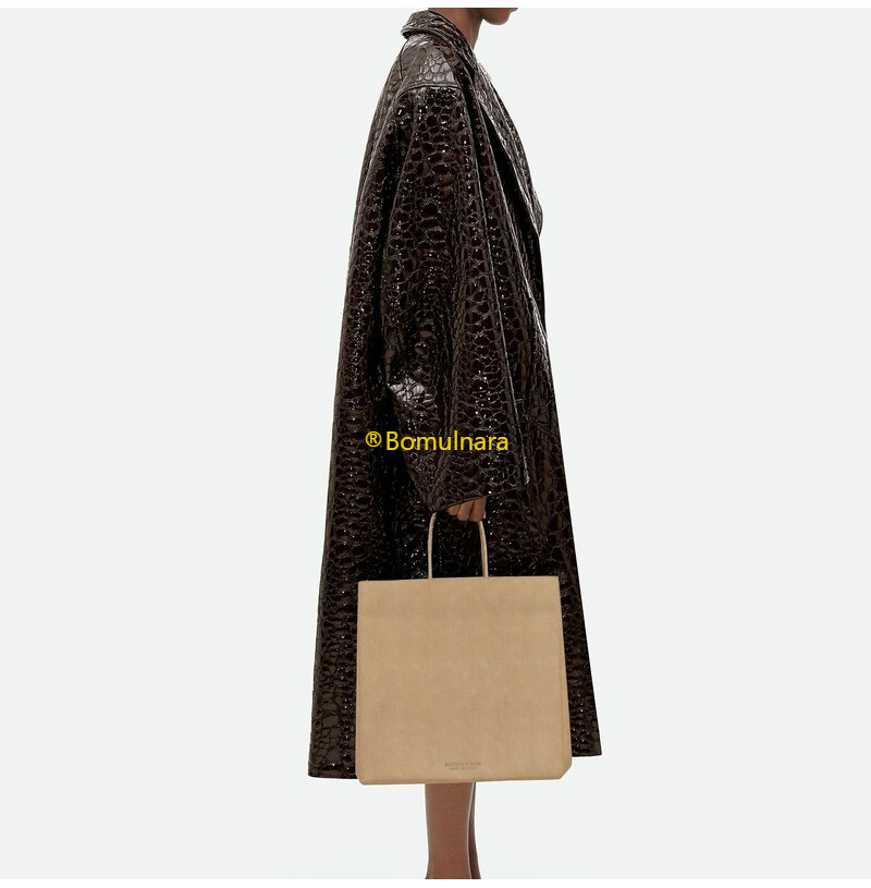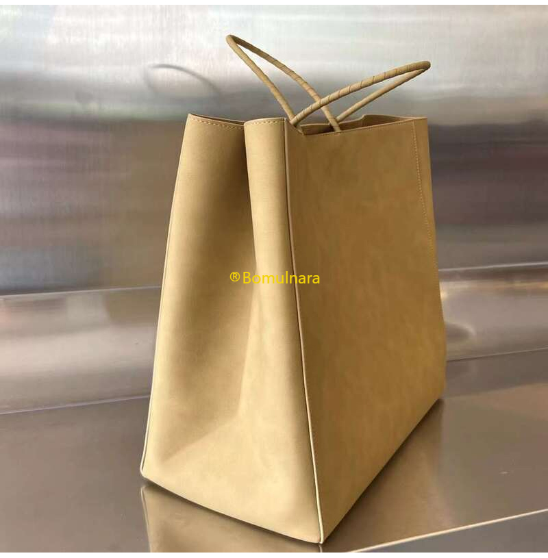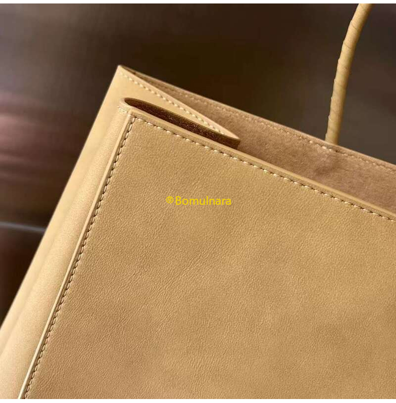 종이 같은 질감의 가죽 소재 미디엄 쇼핑 백
