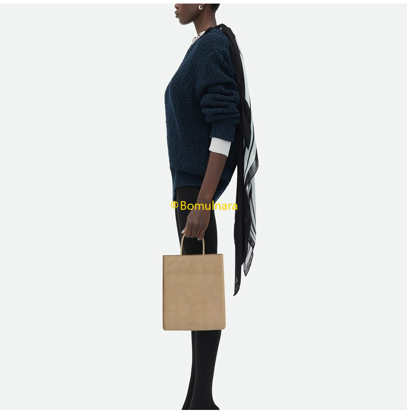종이 같은 질감의 가죽 소재 미디엄 쇼핑 백
