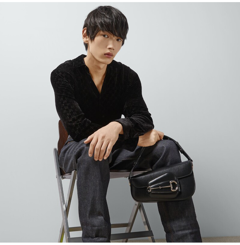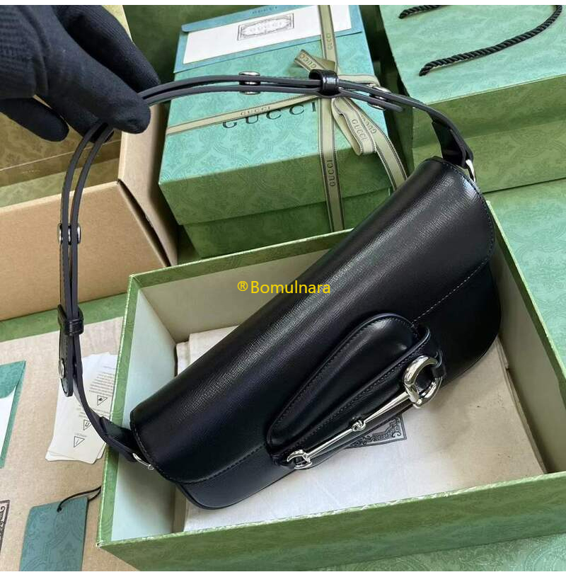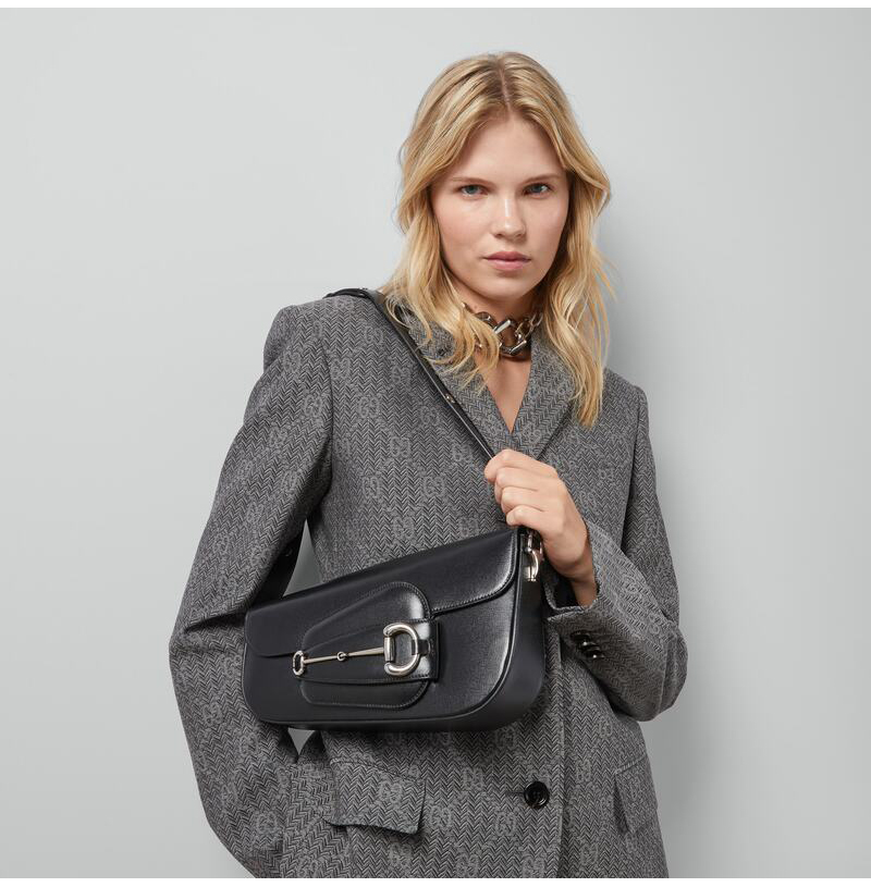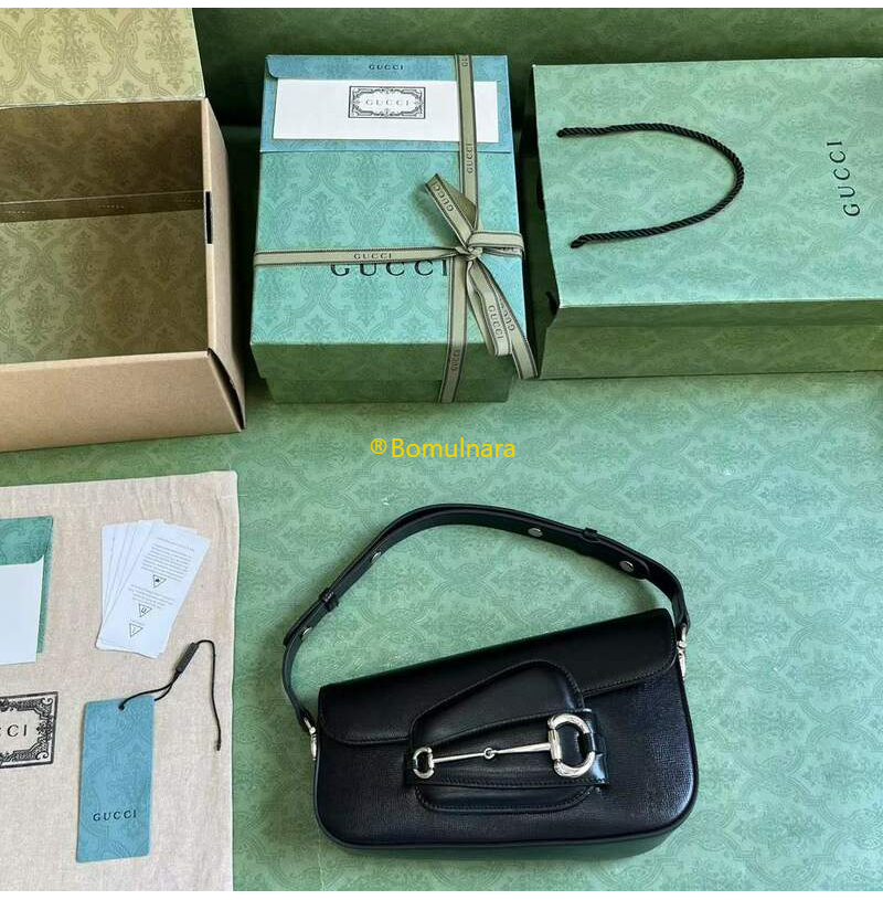 비대칭 형태가 특징인 블랙 레더 구찌 홀스빗