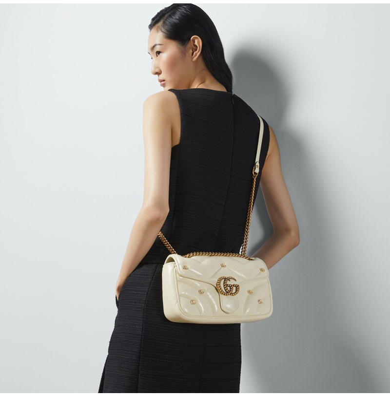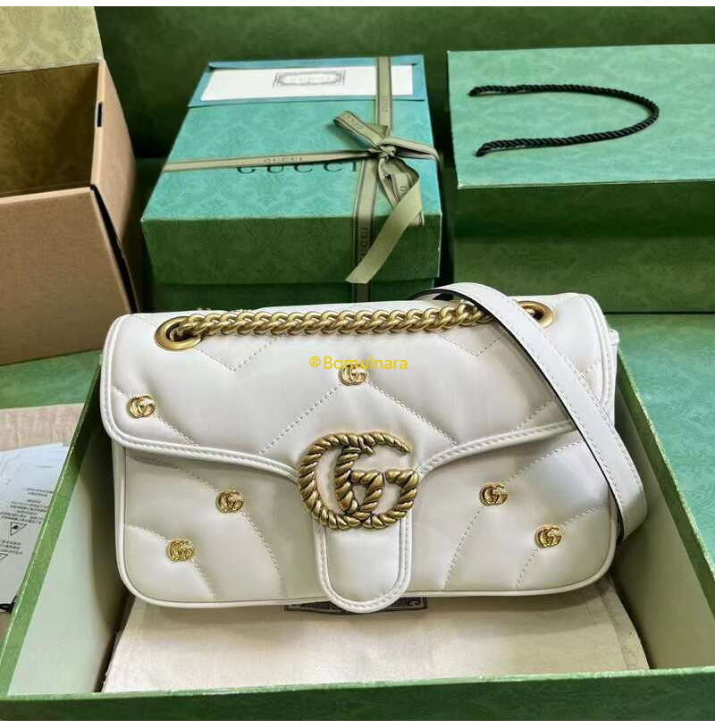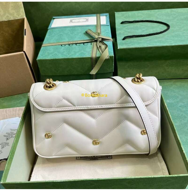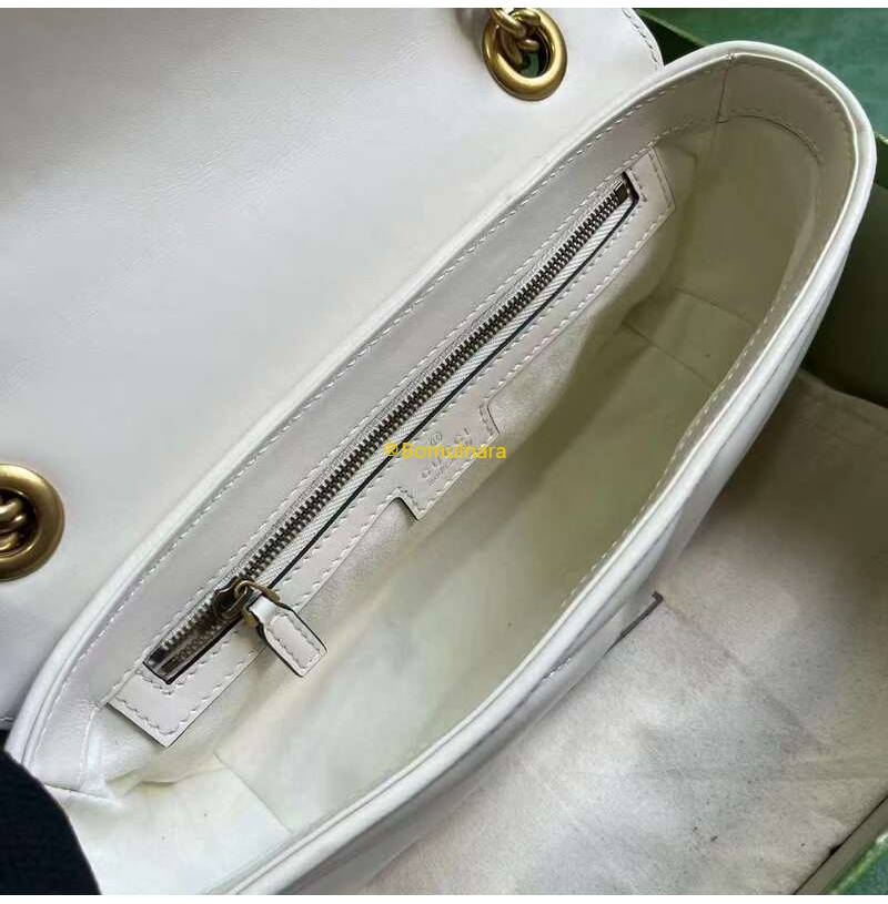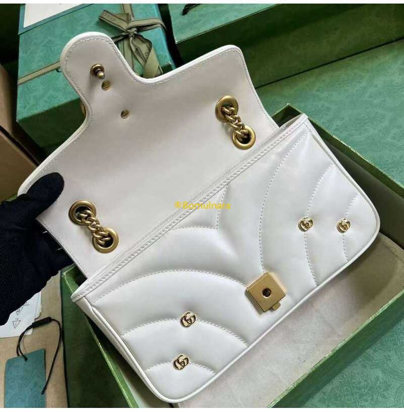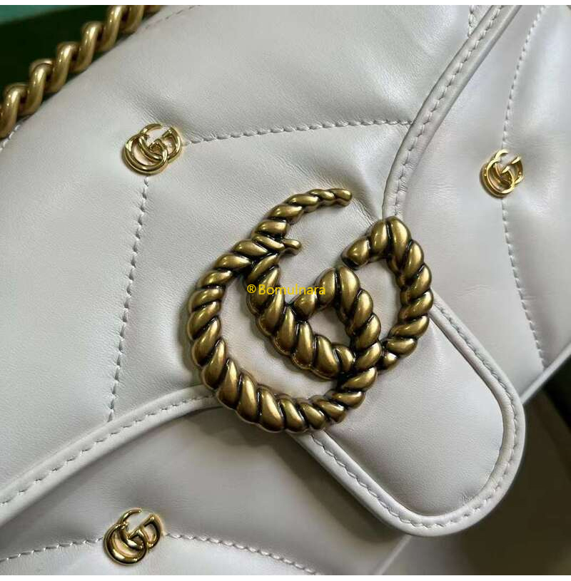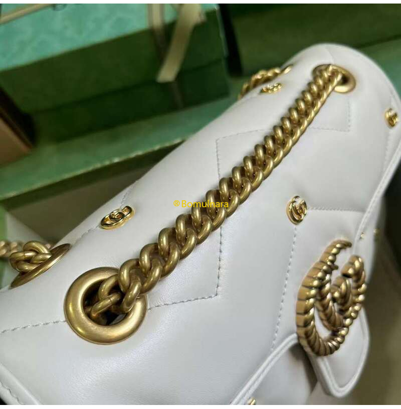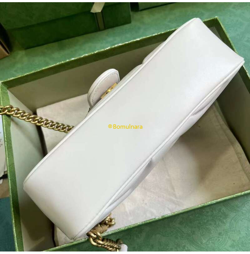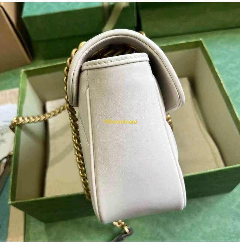 [스페셜오더]GUCCI-443497 9085 구찌 화이트 사선형 마틀라세 퀼트 GG 마몽 스몰 숄더백