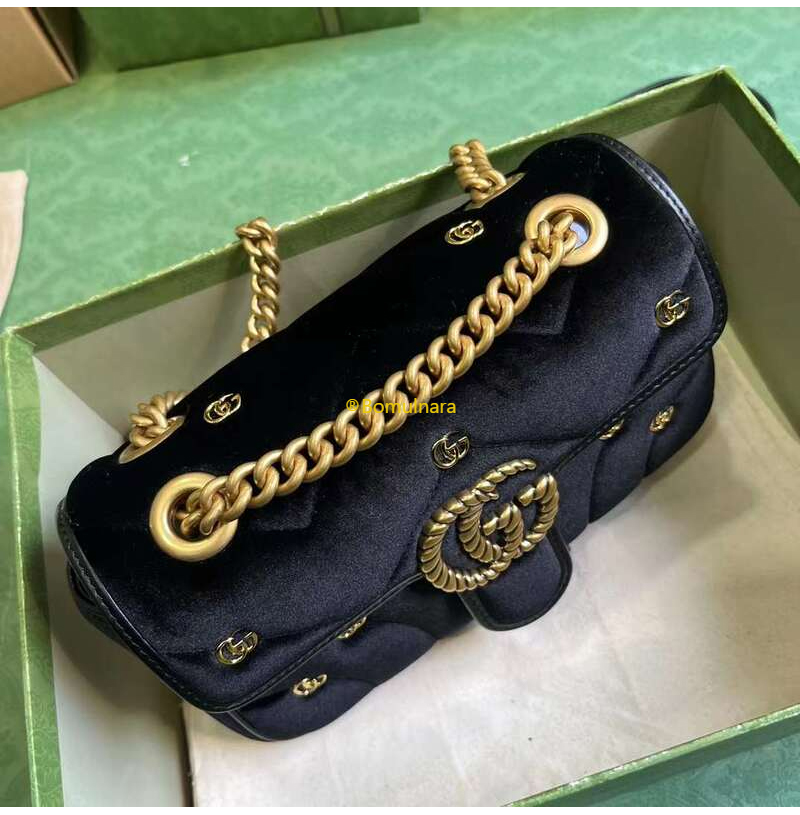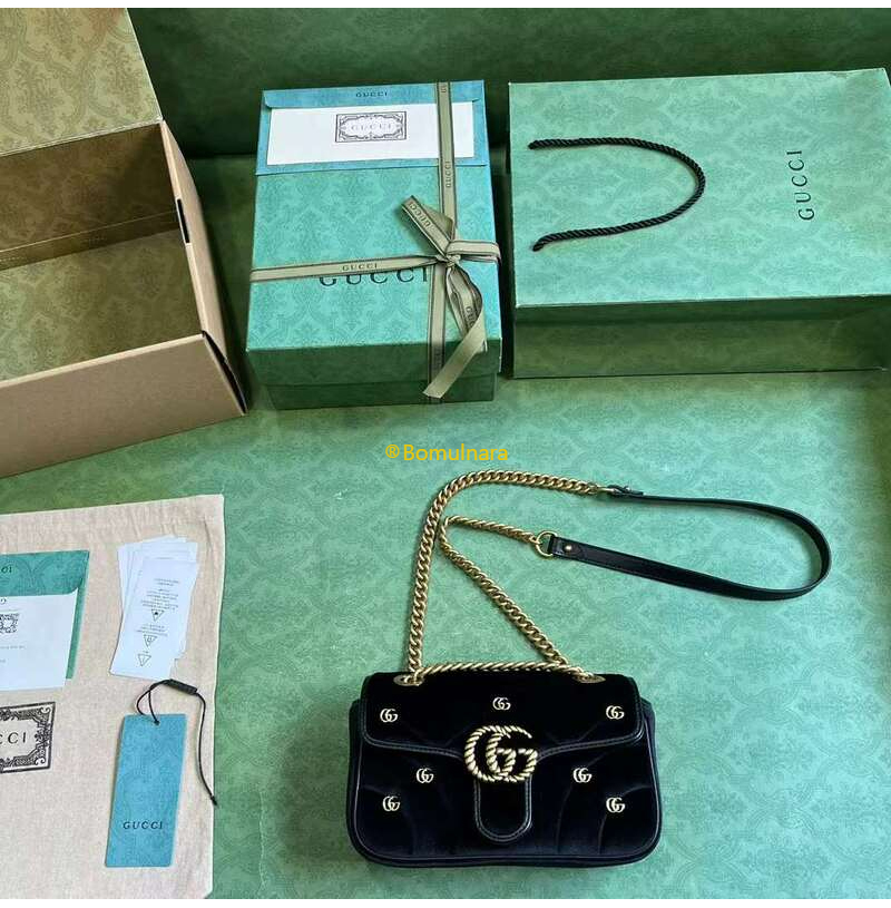 [스페셜오더]GUCCI-446744 FACK2 1000 구찌 블랙 퀼트 쉐브론 벨벳 GG 마몽 미니 숄더백 22cm