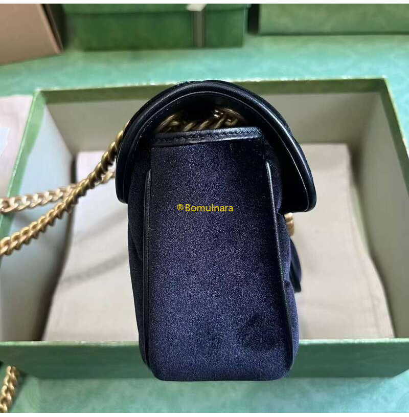 [스페셜오더]GUCCI-446744 1000 구찌 GG Marmont 마틀라세 미니 벨벳 숄더백 페트롤 블랙 가격 : 340,000원