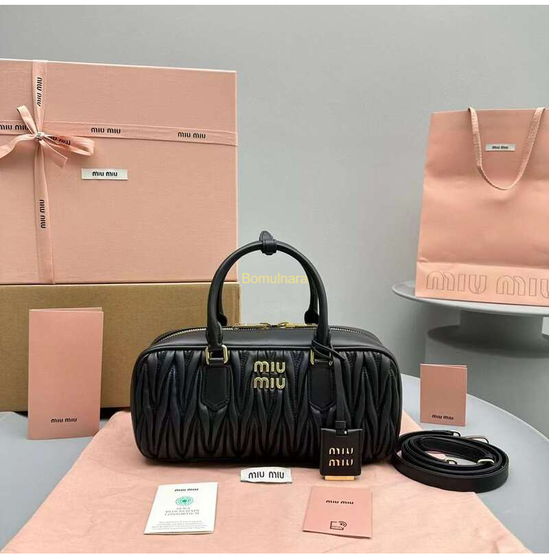 [스페셜오더]MIU MIU-5BB148 미우미우 블랙 마테라쎄 아르카디 미디엄 탑 핸들 백 27cm