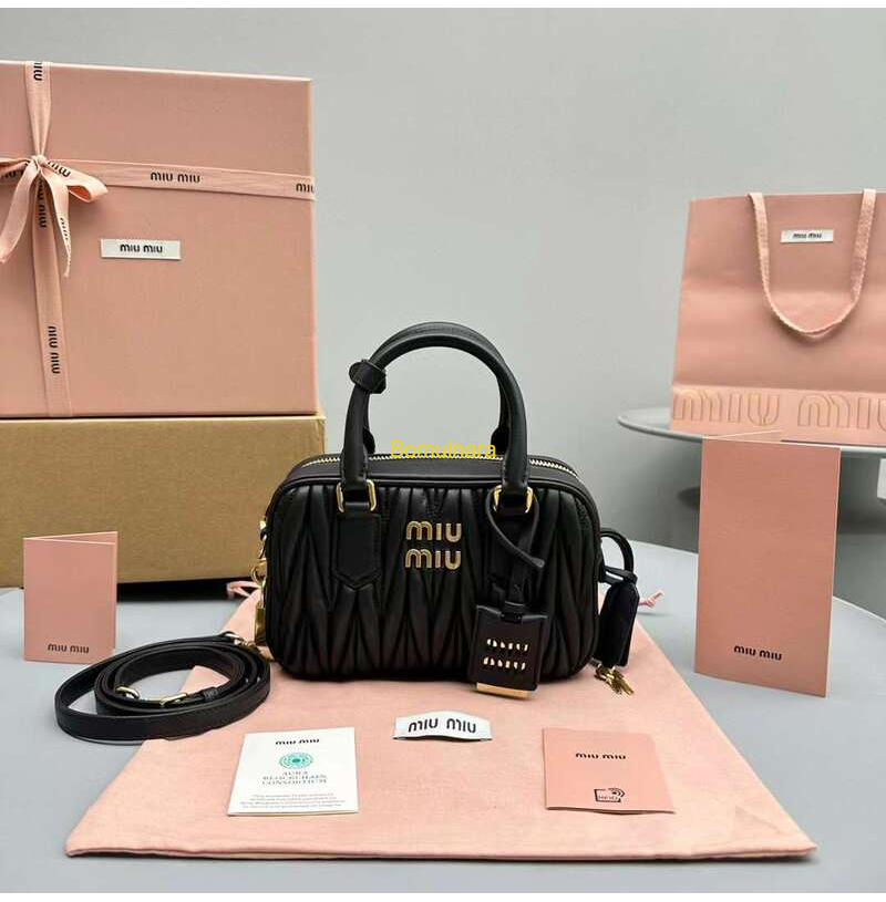 [스페셜오더]MIU MIU-5BB123 미우미우 블랙 마테라쎄 아르카디 스몰 숄더백 19cm