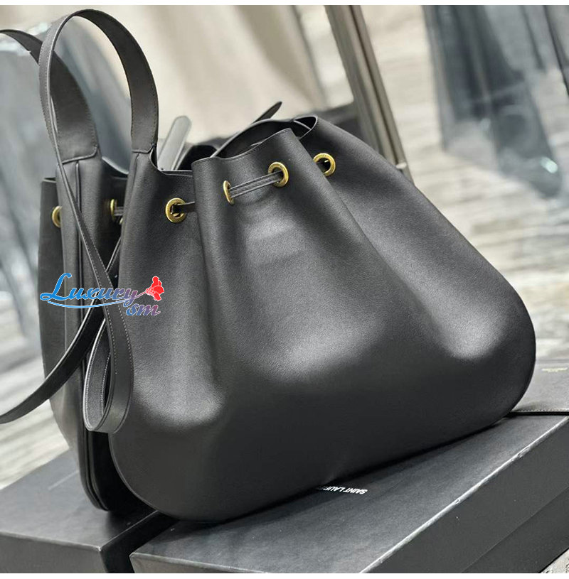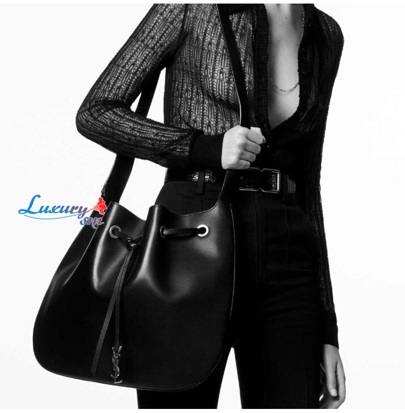 라지 플랫 호보 백 YSL 참이 장식된 가죽 드로우