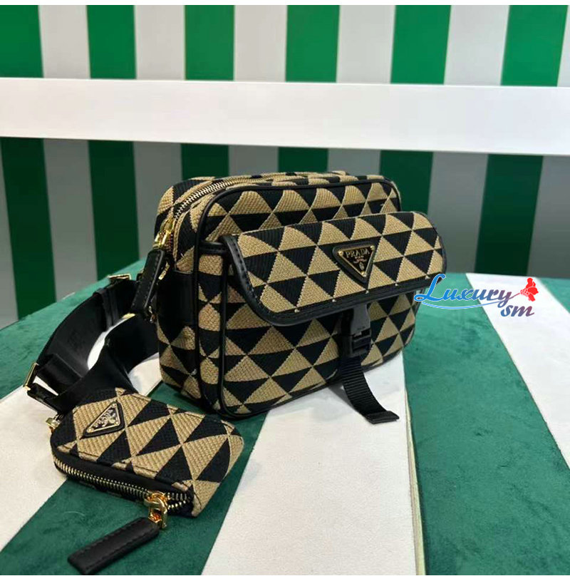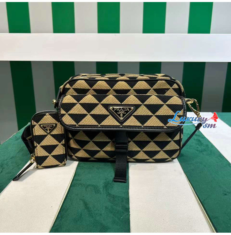 [스페셜오더]PRADA-2VH133 프라다 블랙/베이지 심볼 자수 패브릭 백