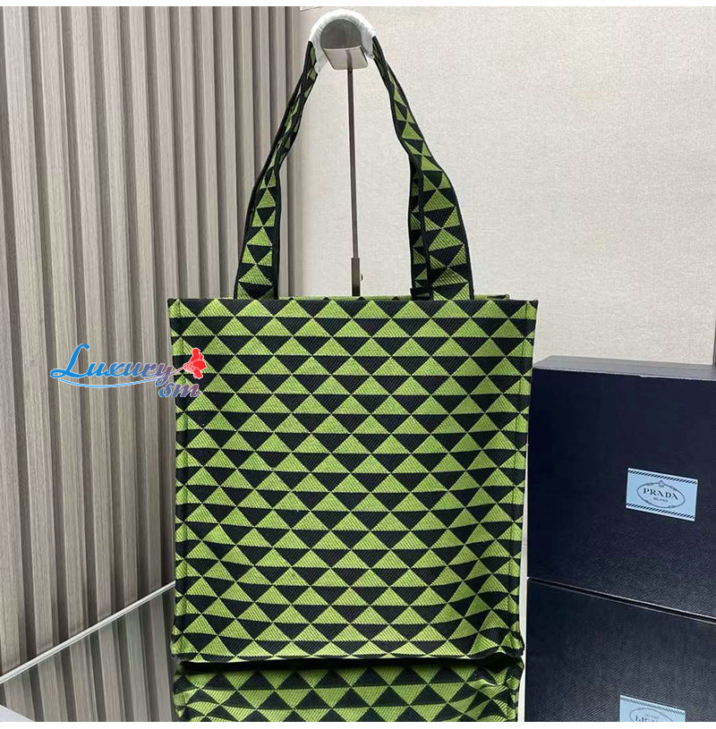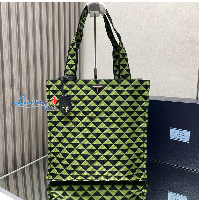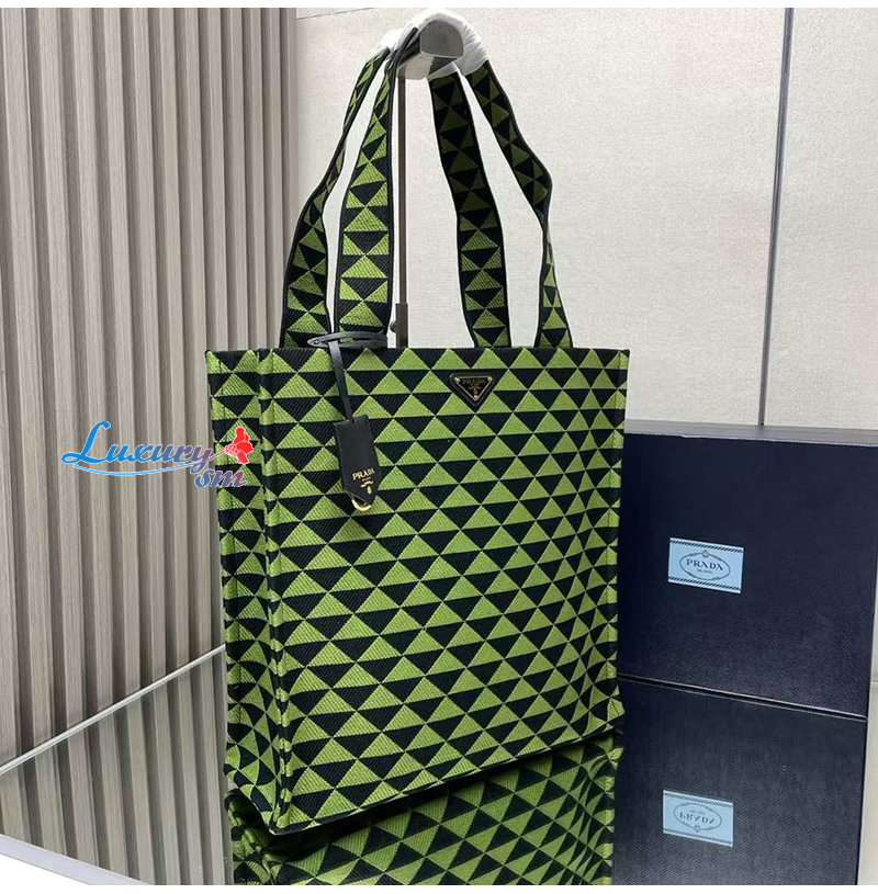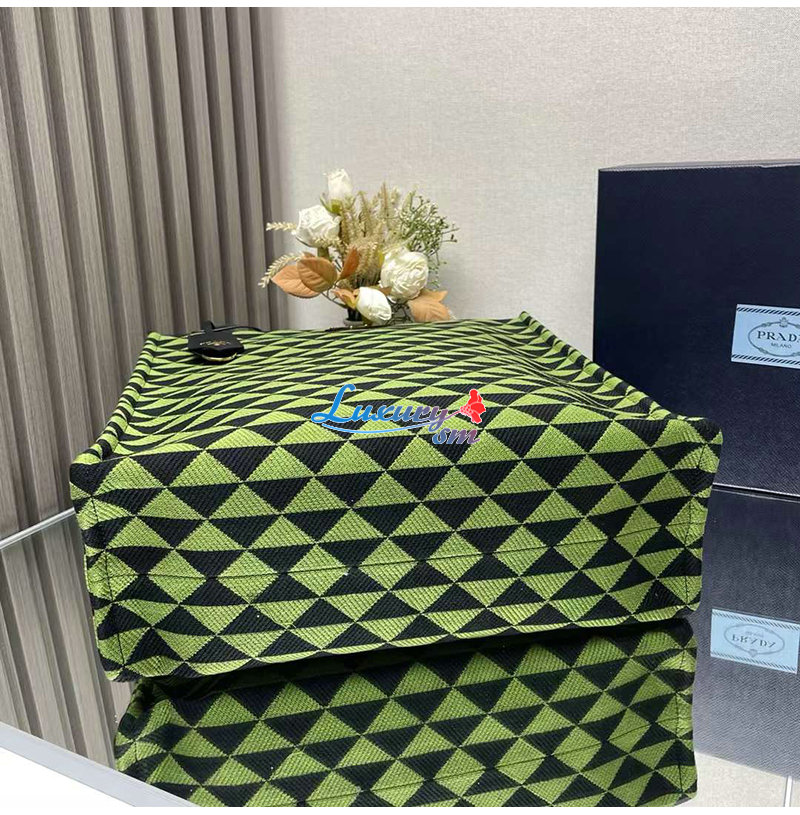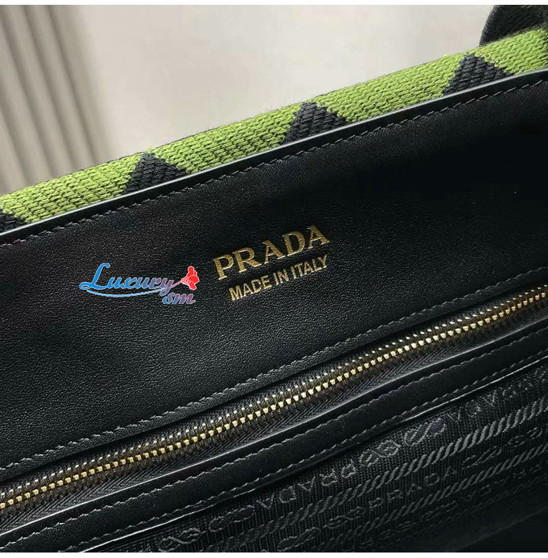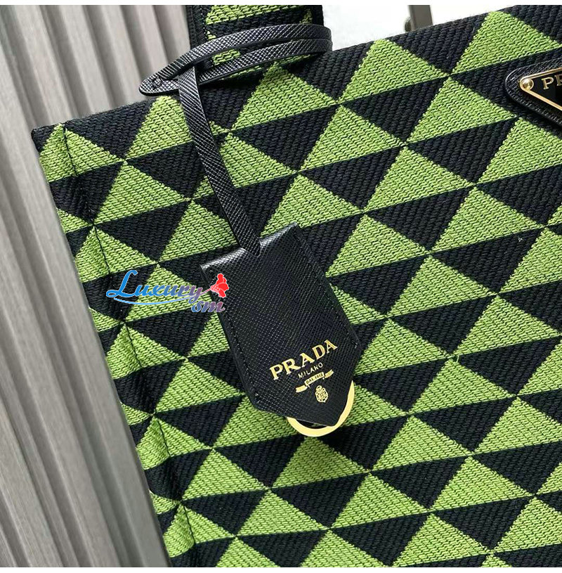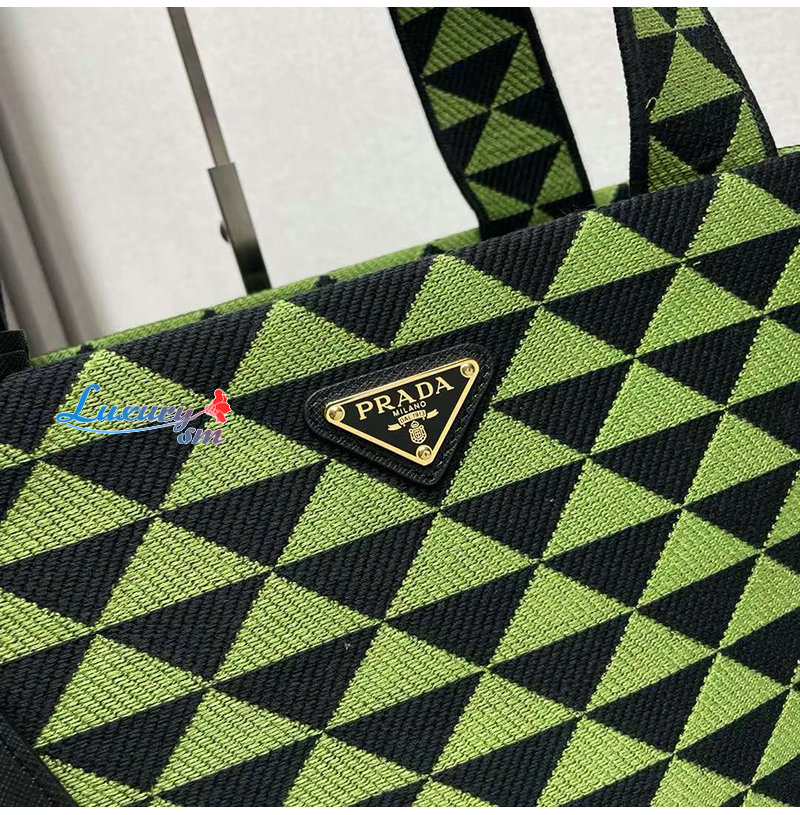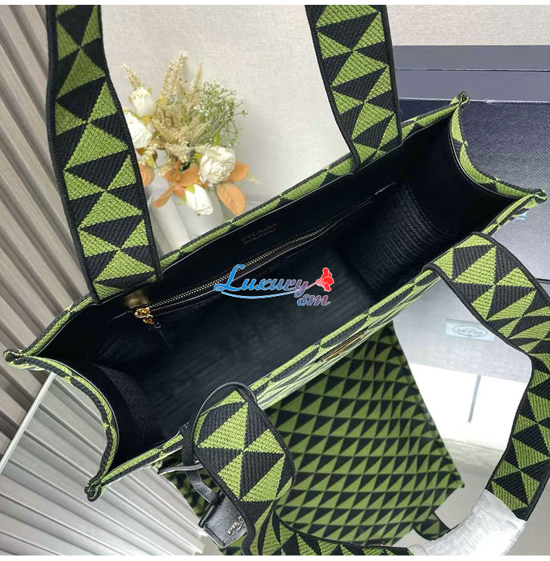 [스페셜오더]PRADA-2VG107 프라다 블랙/그린 자수 패브릭 심볼 토트 백