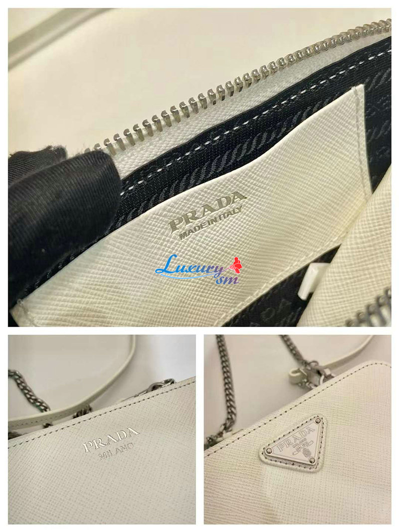 [스페셜오더]PRADA-1NR015 프라다 화이트 사피아노 가죽 미니 파우치