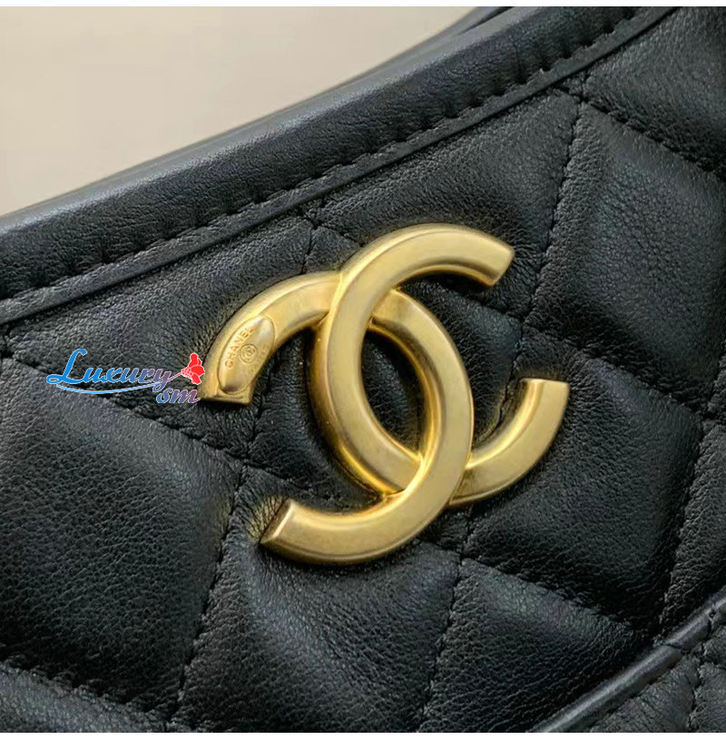 CHANEL-AS4666 샤넬 블랙 카프스킨 호보 핸드백