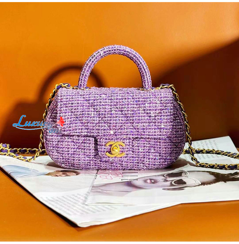 [스페셜오더]CHANEL-AS4573 샤넬 퍼플 트위드 스몰 탑 핸들 백