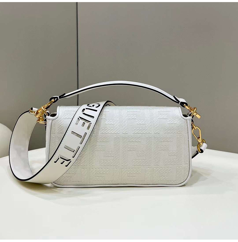 [스페셜오더]FENDI-8BR600 펜디 화이트 FF 캔버스 레이저컷 레터링 스트랩 바게트 백 27CM