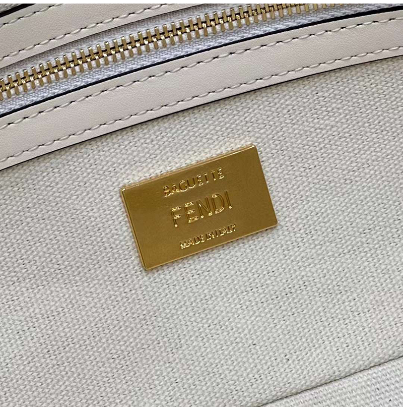 [스페셜오더]FENDI-8BR600 펜디 화이트 FF 글레이즈 패브릭 인레이 미디엄 바게트 백