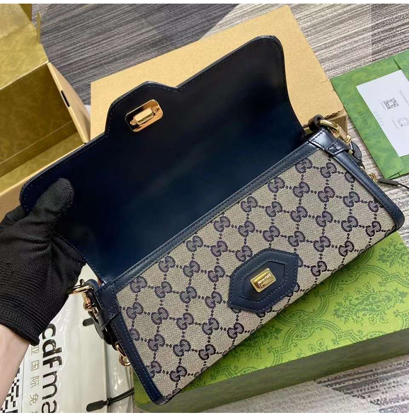 베이지&블루 오리지널 GG 캔버스 / 블루 가죽 트리밍