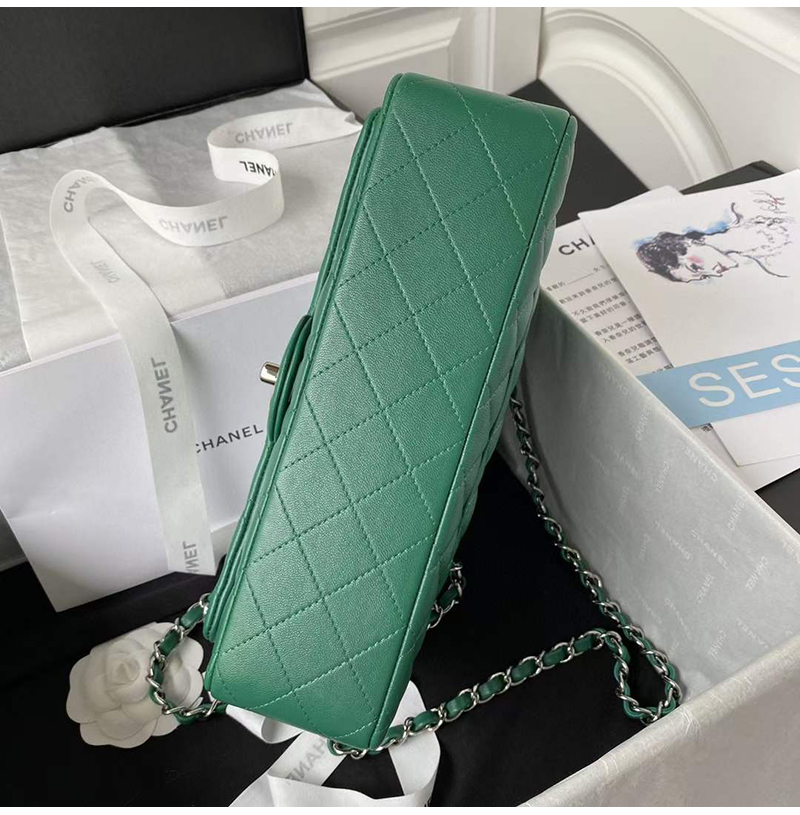[스페셜오더]CHANEL-A01112 샤넬 에메랄드 그린 램스킨 클래식 11.12 미디엄 플랩 백 25.5cm Silver-Tone Metal