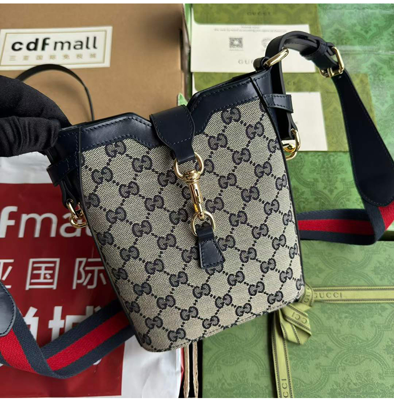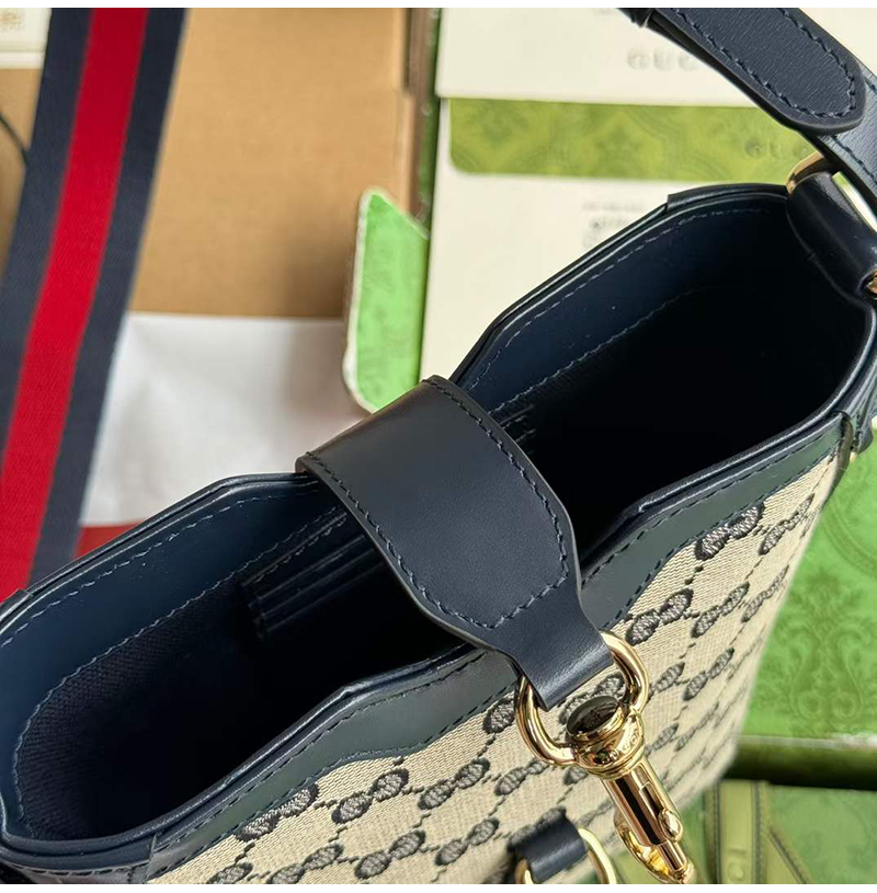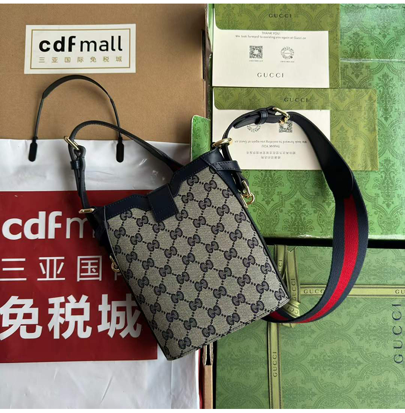오리지널 GG 캔버스로 완성한 미니 버킷백 디자인.