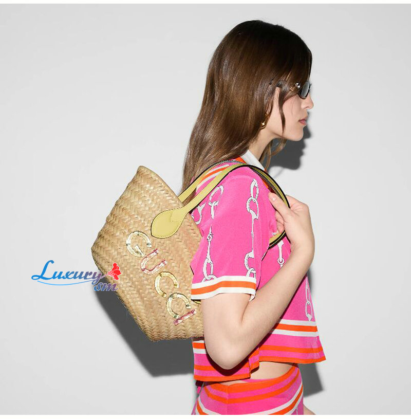 [스페셜오더]GUCCI-782381 9563 구찌 옐로우 구찌 로고 미니 스트로우 토트백