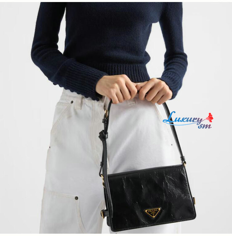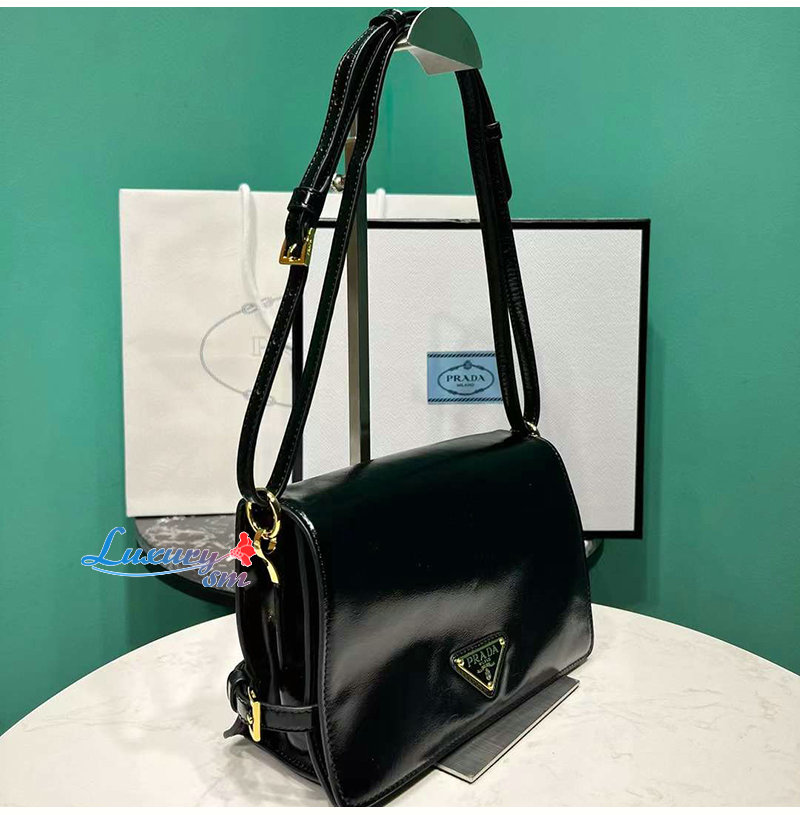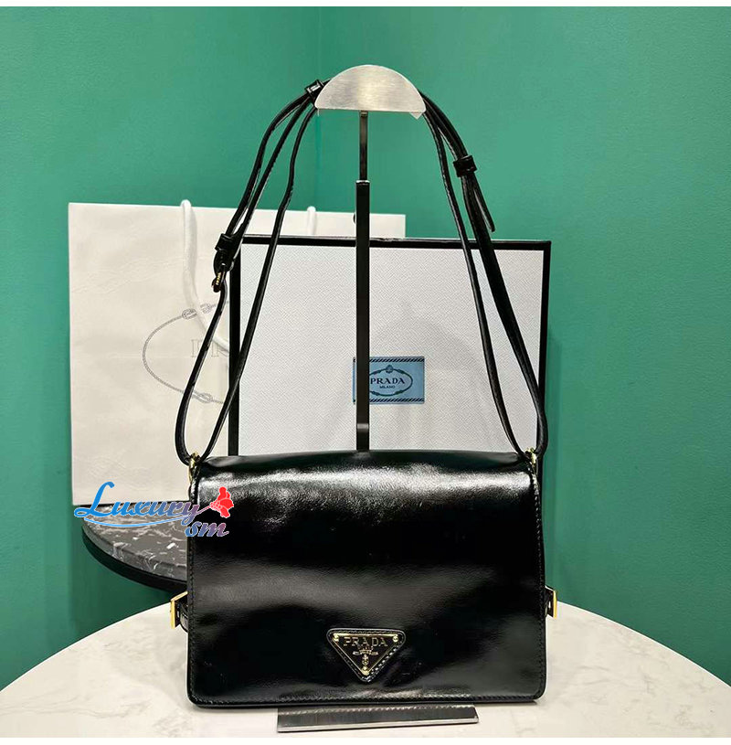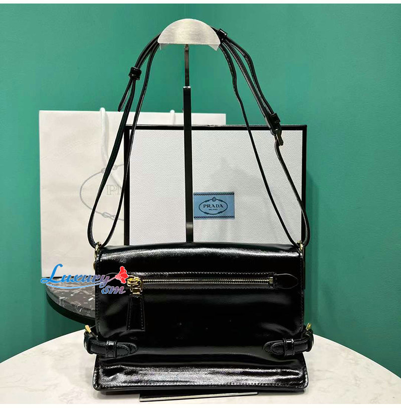 PRADA-1BD082 프라다 블랙 광택 가죽 숄더백