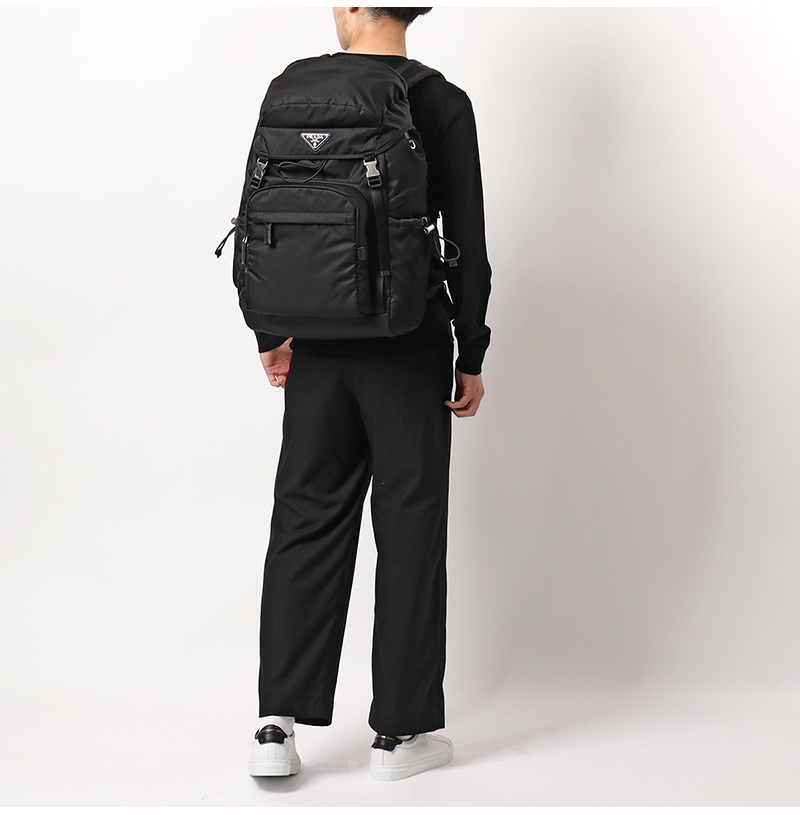 [스페셜오더]PRADA-2VZ090 프라다 블랙 리나일론 및 사피아노 가죽 백팩 32cm