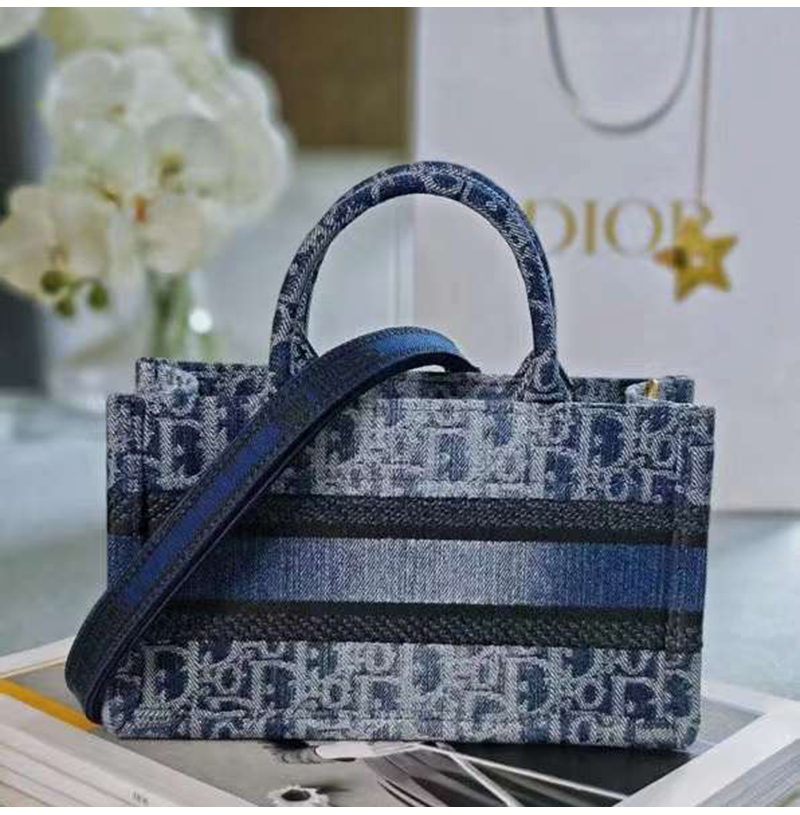 [스페셜오더]DIOR-디올 블루 Denim Oblique 자카드 Book Tote 미니 백 21.5cm - S5573CEGC_M49E