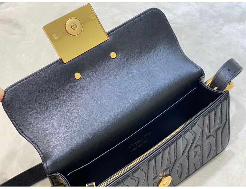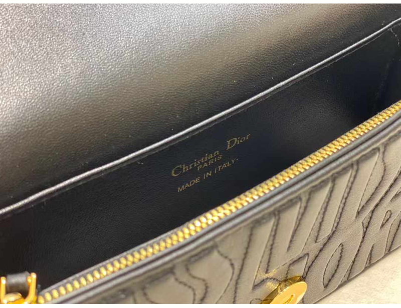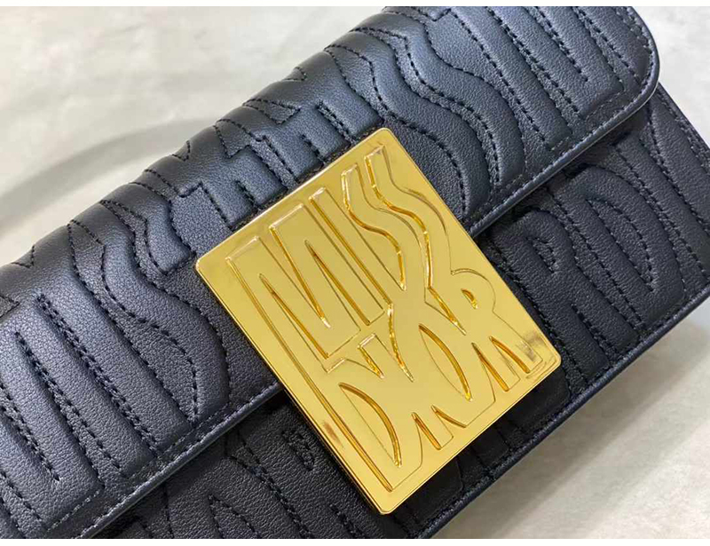블랙 퀼트 Miss Dior Allover 카프스킨 가죽 트리밍