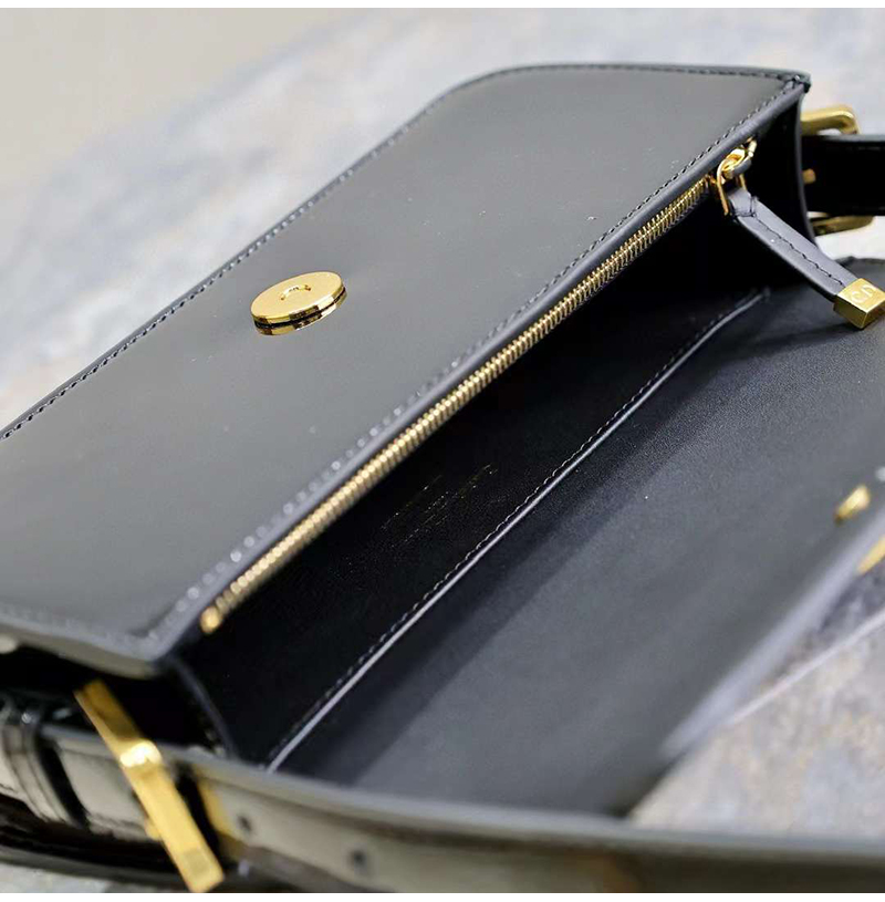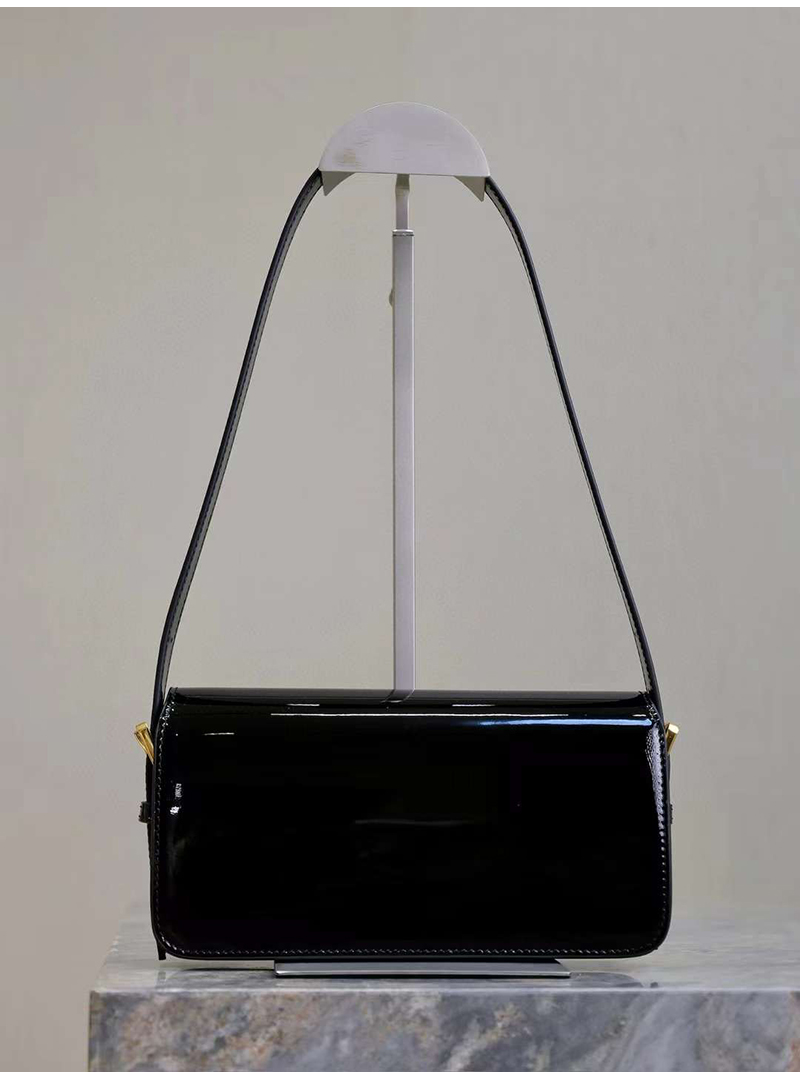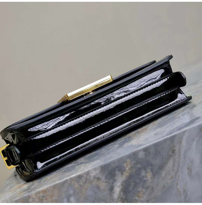 블랙 페이턴트 카프스킨 가죽 트리밍