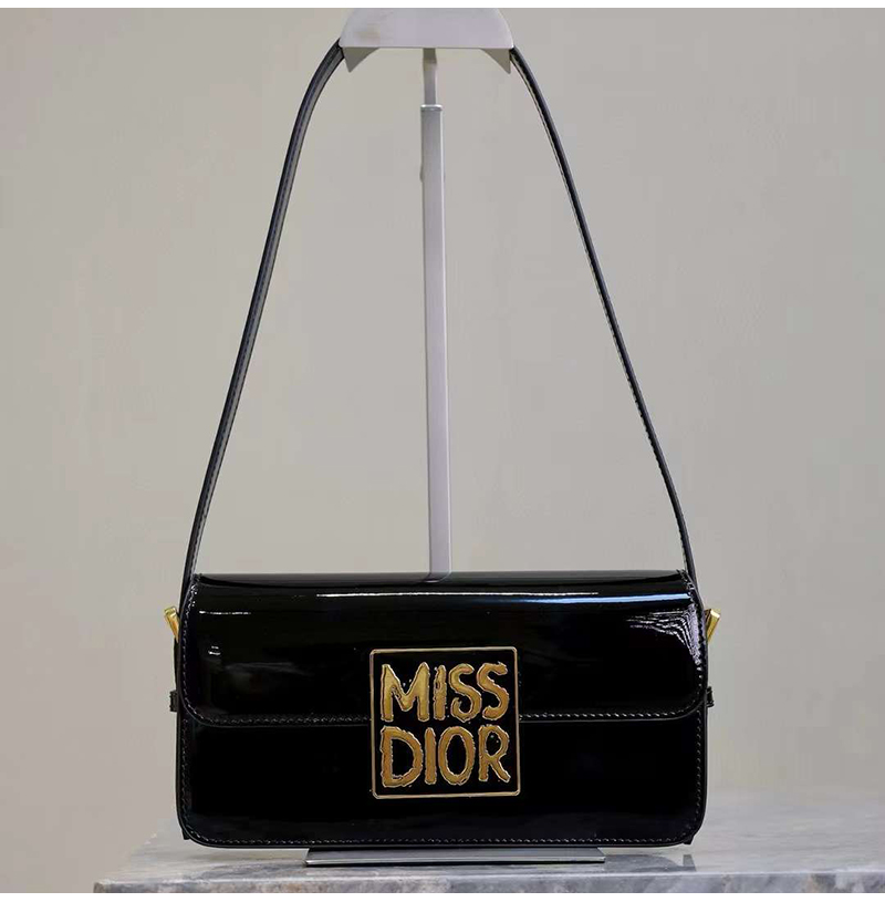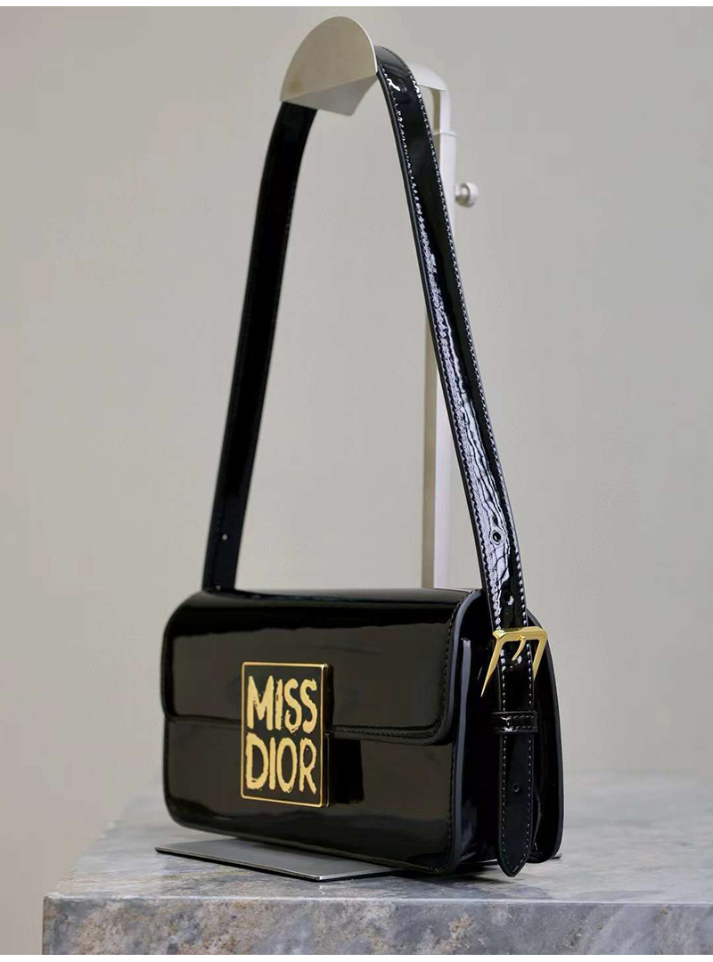 [스페셜오더]DIOR-디올 블랙 페이턴트 카프스킨 Miss Dior 플랩백 22cm - M2610UWIS_M900