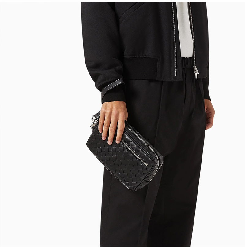 [스페셜오더]BV-777390 보테가 베네타 블랙 인트레치아토 스트랩 레플 파우치 25cm