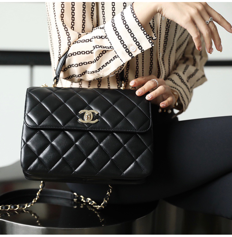 [스페셜오더]CHANEL-A92236 샤넬 블랙 램스킨 스몰 트렌디 CC 플랩 탑 핸들백 25cm