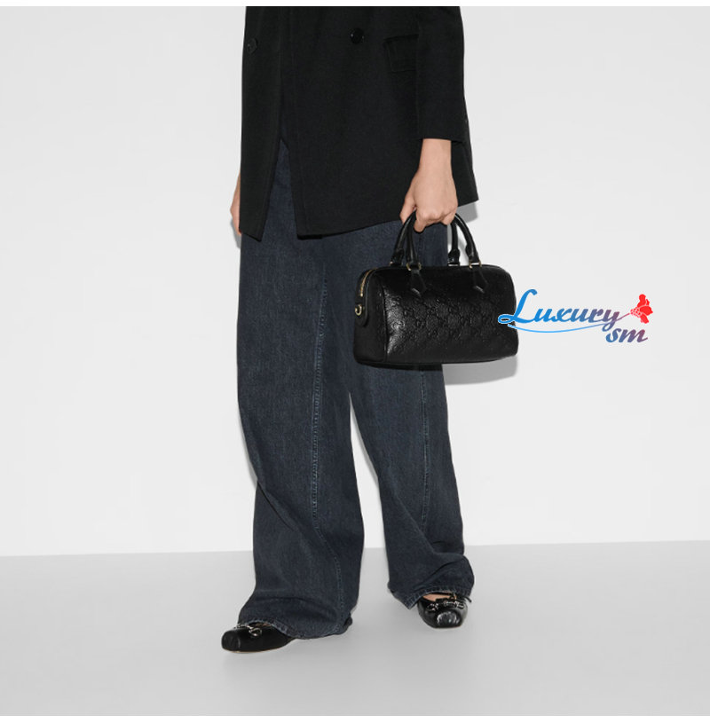 [스페셜오더]GUCCI-815255 1000 구찌 블랙 가죽 GG 엠블럼 스몰 탑 핸들백