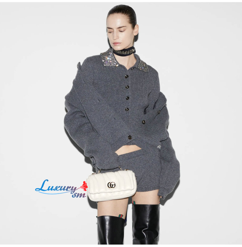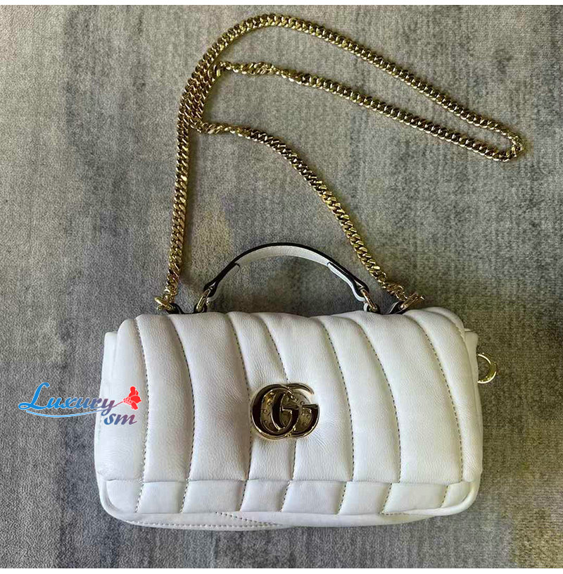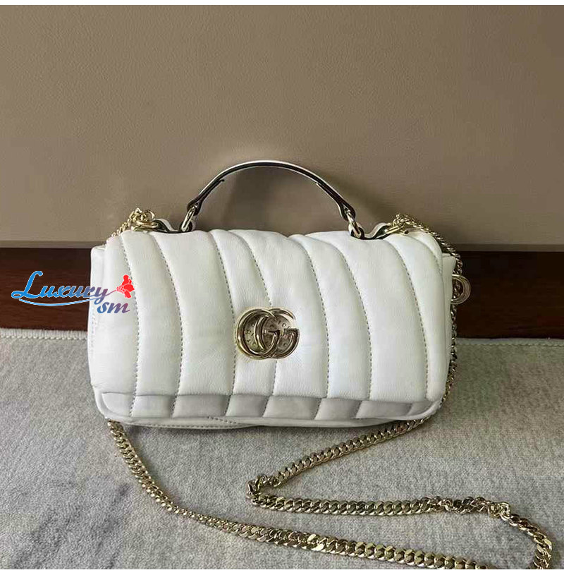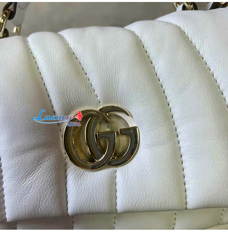 [스페셜오더]GUCCI-806017 9110 구찌 화이트 패딩 퀼티드 레더 GG 밀라노 미니 탑 핸들백