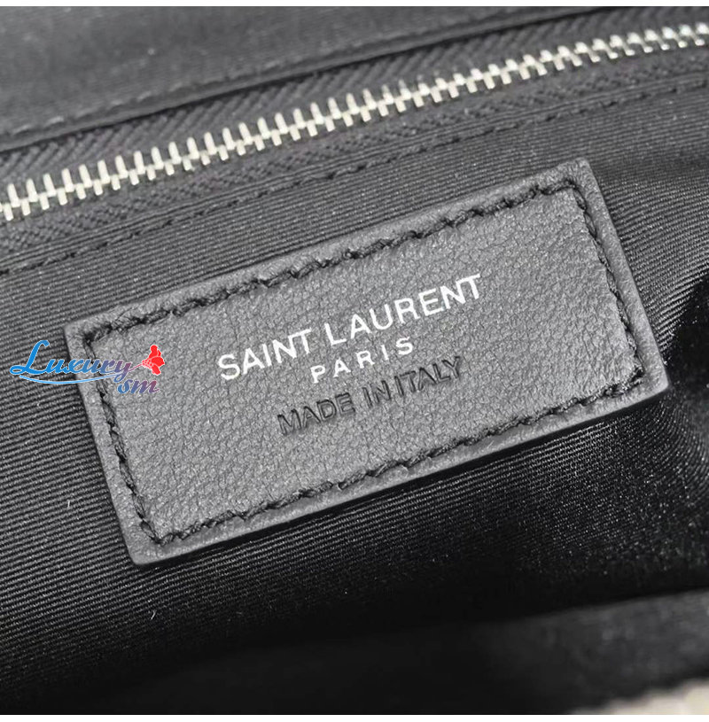크로스백 앞면에 대비되는 Saint Laurent 자수